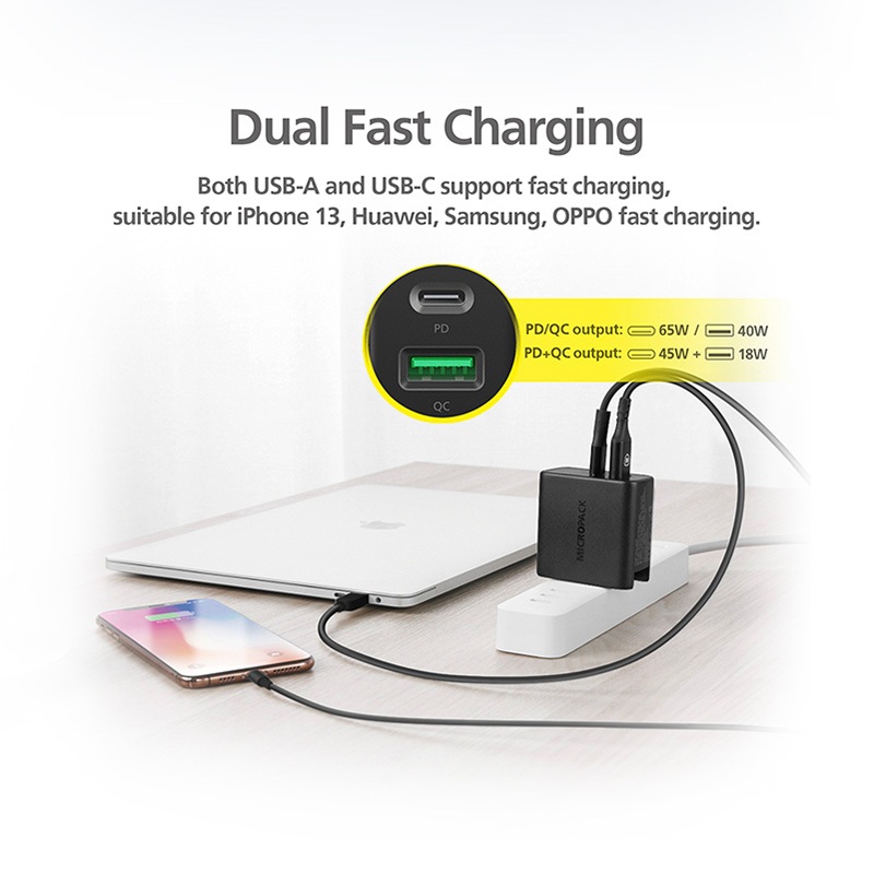 Củ sạc MicroPack POWER SERVER GaN 65W MWC-265PD Nhỏ Gọn Tặng Kèm Đầu Cắm US/ EU/ UK