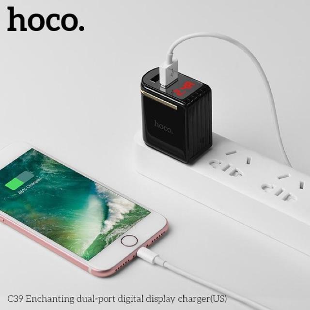 ✨Củ sạc nhanh 2 cổng Hoco C39 us - max 5v-2.4a( 12w), màn hình LCD hiển thị điện áp - hàng chính hãng