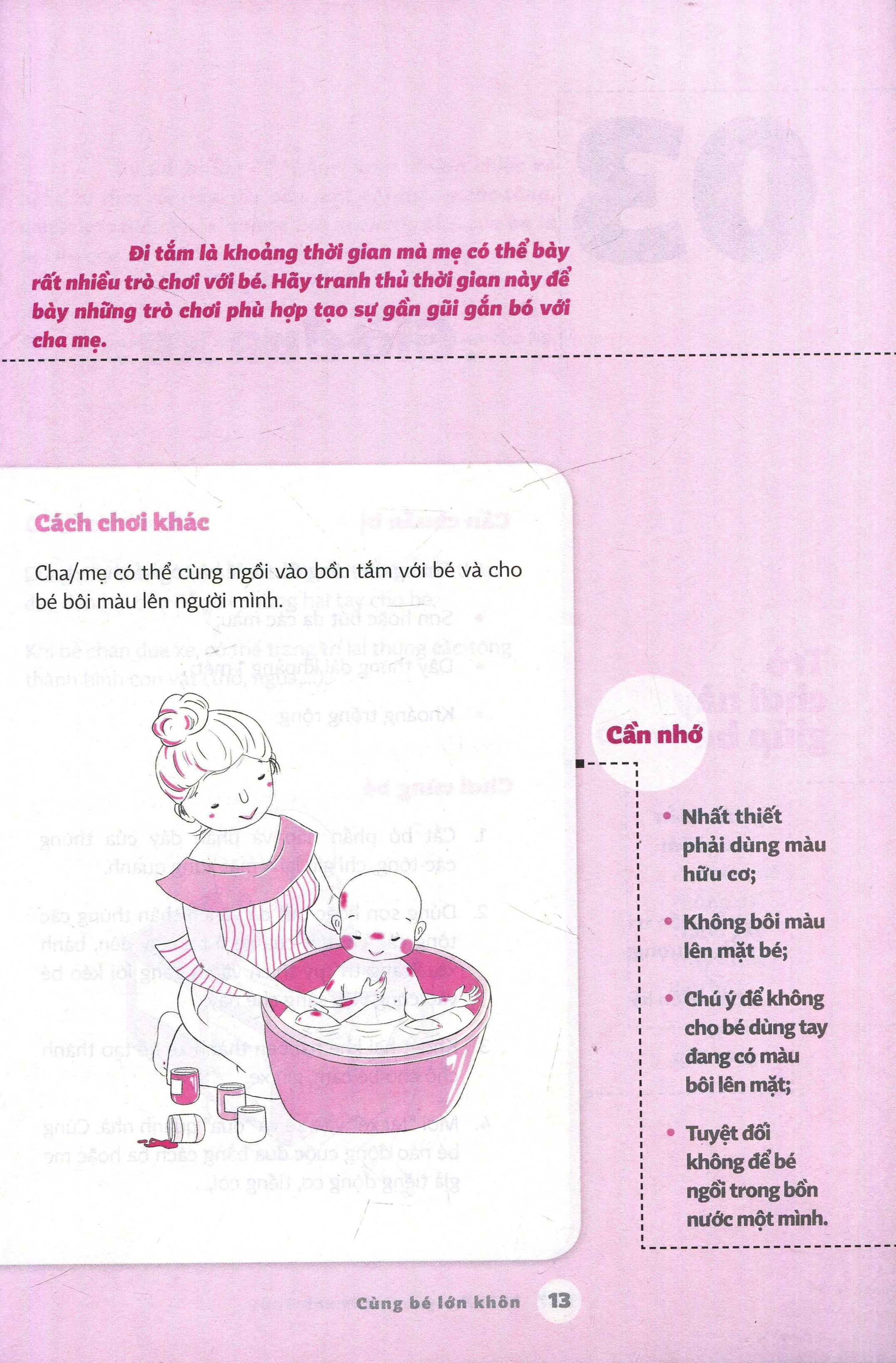 Cùng bé lớn khôn là cuốn sách sẽ hướng dẫn ba mẹ “chơi cùng con” mỗi ngày, thông qua việc chơi những trò chơi đơn giản, bằng những đồ vật dùng trong sinh hoạt hàng ngày, thậm chí chỉ là trò chơi bằng tay, bằng miệng đơn thuần sẽ giúp trẻ phát triển những kỹ năng cần thiết trong giai đoạn bé lớn. Những kỹ năng như tương tác như: giao tiếp, giải quyết vấn đề, so sánh, phát triển óc nhận xét, rèn luyện các nhóm cơ… đều được phát triển thông qua việc chơi