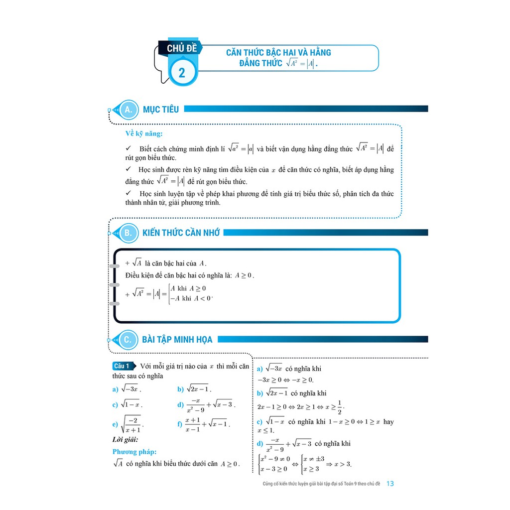 Củng cố kiến thức luyện giải bài tập đại số 9 là cuốn sách tổng hợp 4 chương với 20 chủ đề kiến thức trọng tâm của chương trình Đại số 9. Những ƯU ĐIỂM nổi bật của cuốn sách: 1. Cuốn sách tổng hợp hệ thống kiến thức cơ bản cần nhớ qua 4 chương và 20 chủ đề trọng tâm của chương trình đại số 9 như: Căn bậc 2, căn bậc 3, hàm số bậc nhất, … 2. Cuốn sách xây dựng mục tiêu tổng quát cho từng chủ đề, về cả kỹ năng và kiến thức, giúp các em xác định được trọng tâm kiến thức cần đạt được sau mỗi bài học. Sau mỗi chương sẽ có bài kiểm tra tổng quát, giúp các em tự đánh giá được năng lực của bản thân. 3. Bài tập minh họa cụ thể, đa dạng sau mỗi phần kiến thức cơ bản, giúp vận dụng được kiến thức một cách tối đa vào từng dạng bài, từ đó học sâu, nhớ lâu kiến thức. 4. Bài tập tự luyện giúp rèn luyện kỹ năng giải toán dưới 2 hình thức tự luận và trắc nghiệm. Đi kèm sau đó là lời giải chi tiết cho từng bài 5. Kiến thức đi từ cơ bản đến nâng cao, lời giải siêu chi tiết cho từng bài từ đó phù hợp với học lực của từng học sinh kể cả trung bình – khá. Với những ƯU ĐIỂM trên, cuốn sách chắc chắn sẽ trở thành người bạn đồng hành đắc lực, giúp các em học sinh lớp 9 chinh phục thành công môn Đại số.