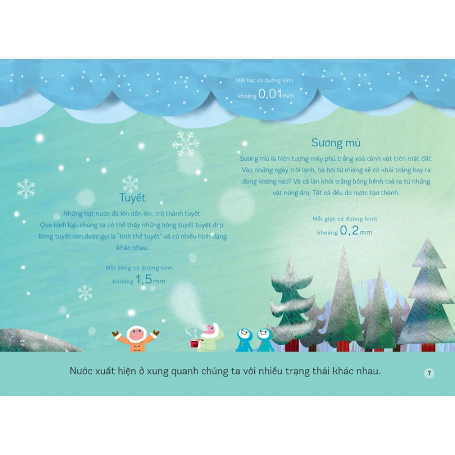 Hơn 70% diện tích Trái Đất là NƯỚC! Nước chảy thành dòng, dù có chặn lại thì nước vẫn tiếp tục chảy. Mây, mưa, tuyết và cả sương mù đều được hình thành từ nước đó! Tại sao lại thần kì như vậy nhỉ? Hãy để cuốn sách “Cùng tìm hiểu về khoa học tự nhiên - Nước” giải đáp thắc mắc cho bé nhé.