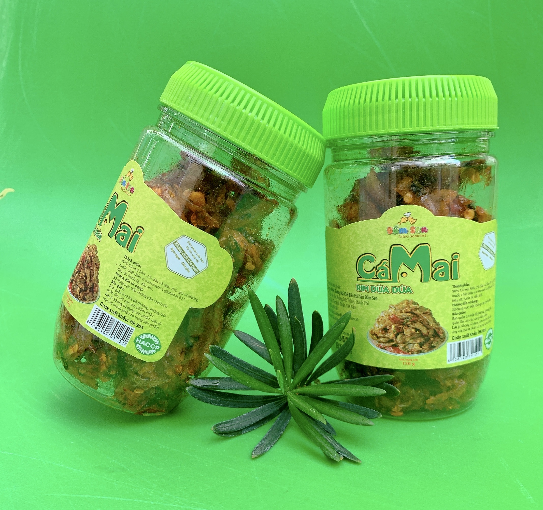 Thành phần: 90% cá mai khô, 2% dừa và dứa, 8% gia vị (đường, muối, chất điều vị mononatri L-glutamat 621, tiêu, ớt, hành lá, dầu ăn) Hạn sử dụng: 9 tháng kể từ ngày sản xuất Hướng dẫn sử dụng: Sử dụng trực tiếp không cần chế biến. Hướng dẫn bảo quản: Bảo quản ở nhiệt độ thường, không bảo quản lẫn với các sản phẩm khác Lưu ý: Không sử dụng sản phẩm nếu dị ứng với thành phần có trong sản phẩm