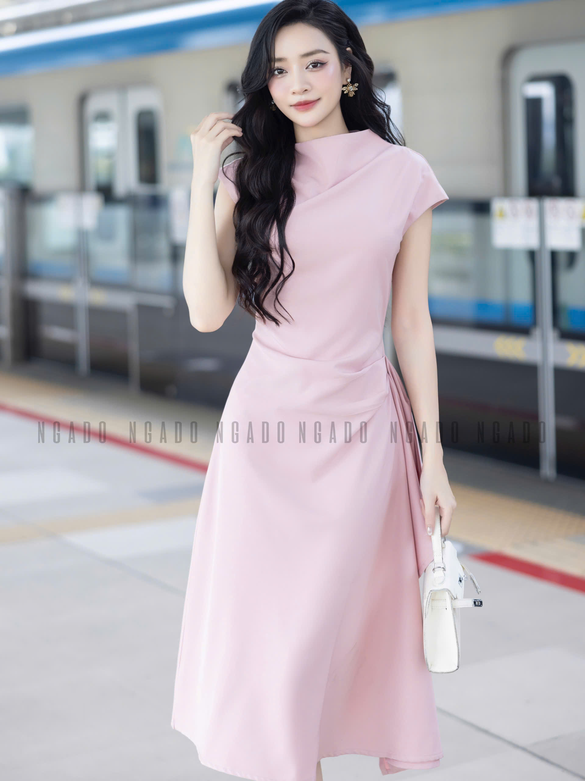 ✨Đầm hồng cổ cao vạt xéo NGADO