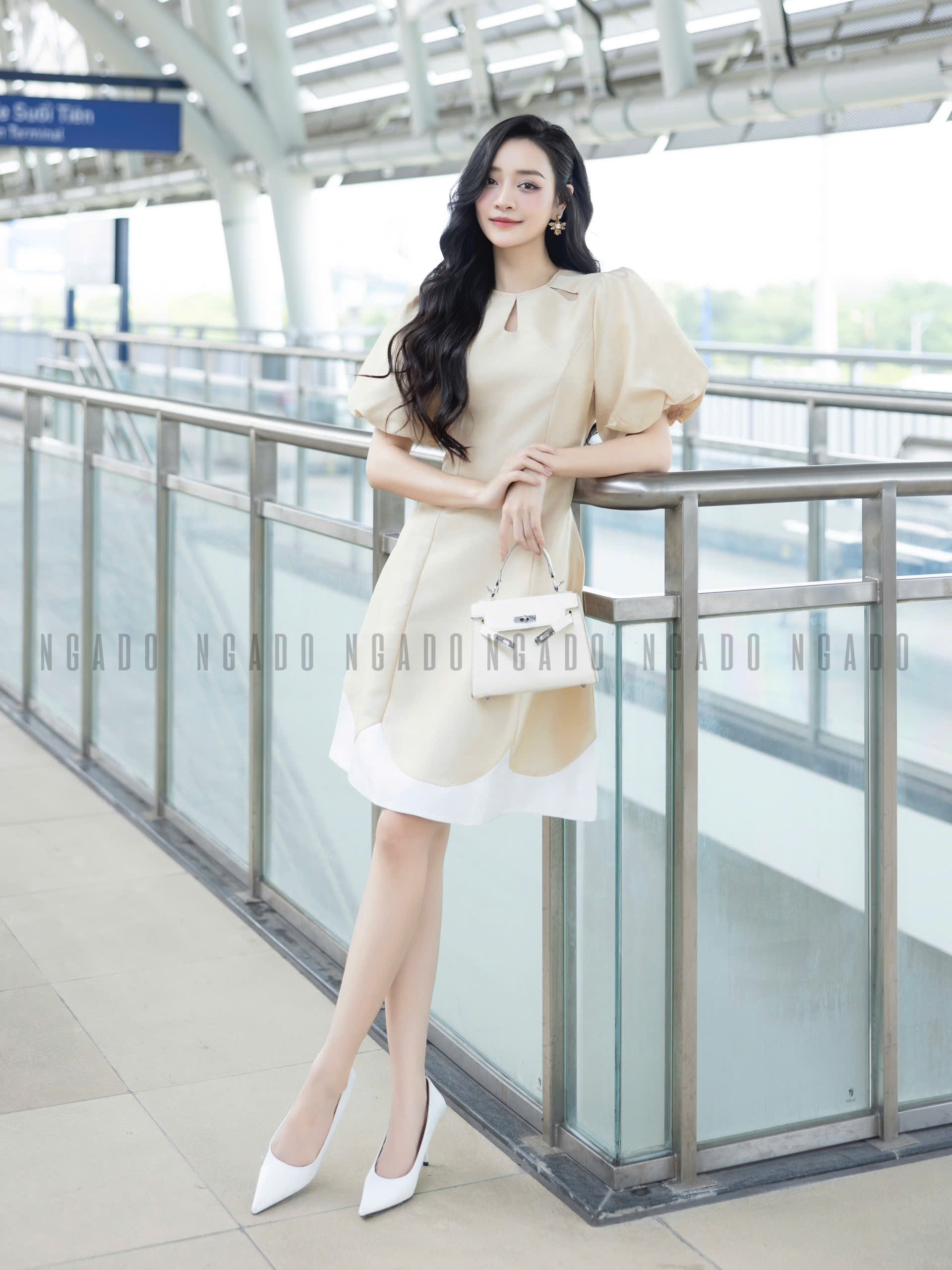 ✨Đầm nude tay phồng NGADO , đầm dự tiệc , đầm thiết kế
