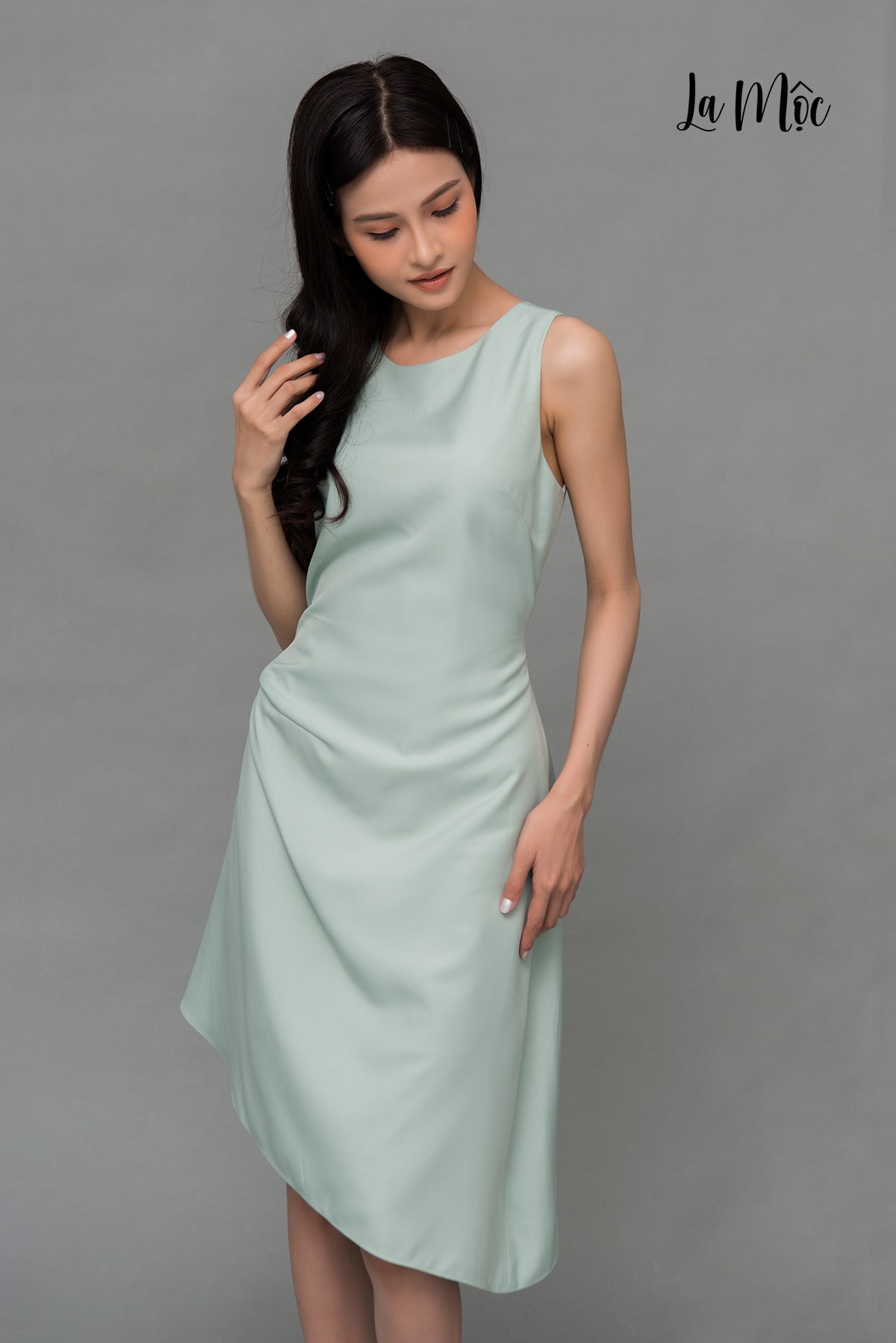 Đầm xanh cổ tròn La Mộc chất liệu lụa Korea là mẫu thiết kế dành riêng cho những cô nàng ưa thích sự sành điệu. Thiết kế chú trọng từng đường may. Phong cách trẻ trung, thanh lịch làm nổi bật được thần thái của người mặc
