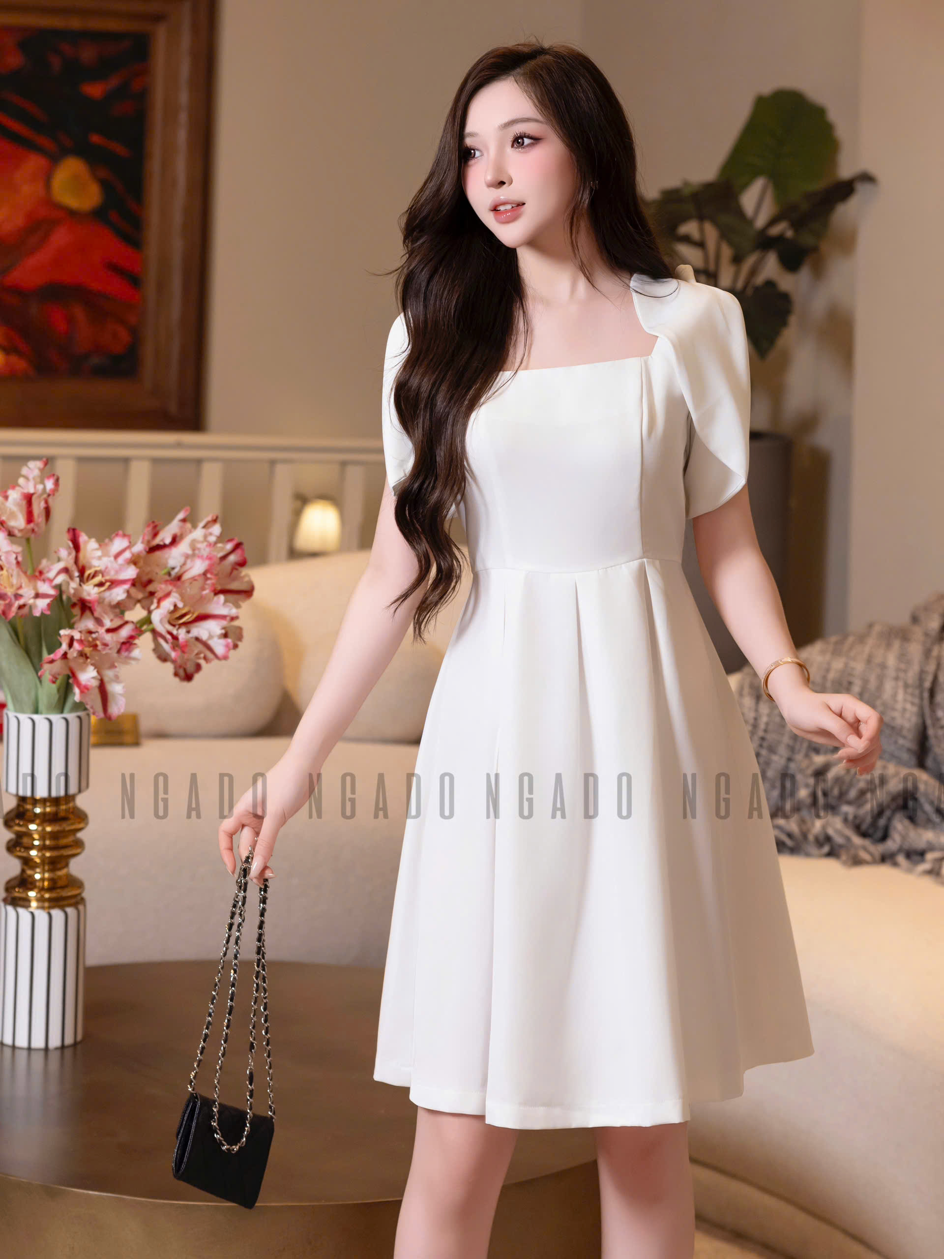✨Đầm trắng xếp ly NGADO , đầm dự tiệc , đầm công sở