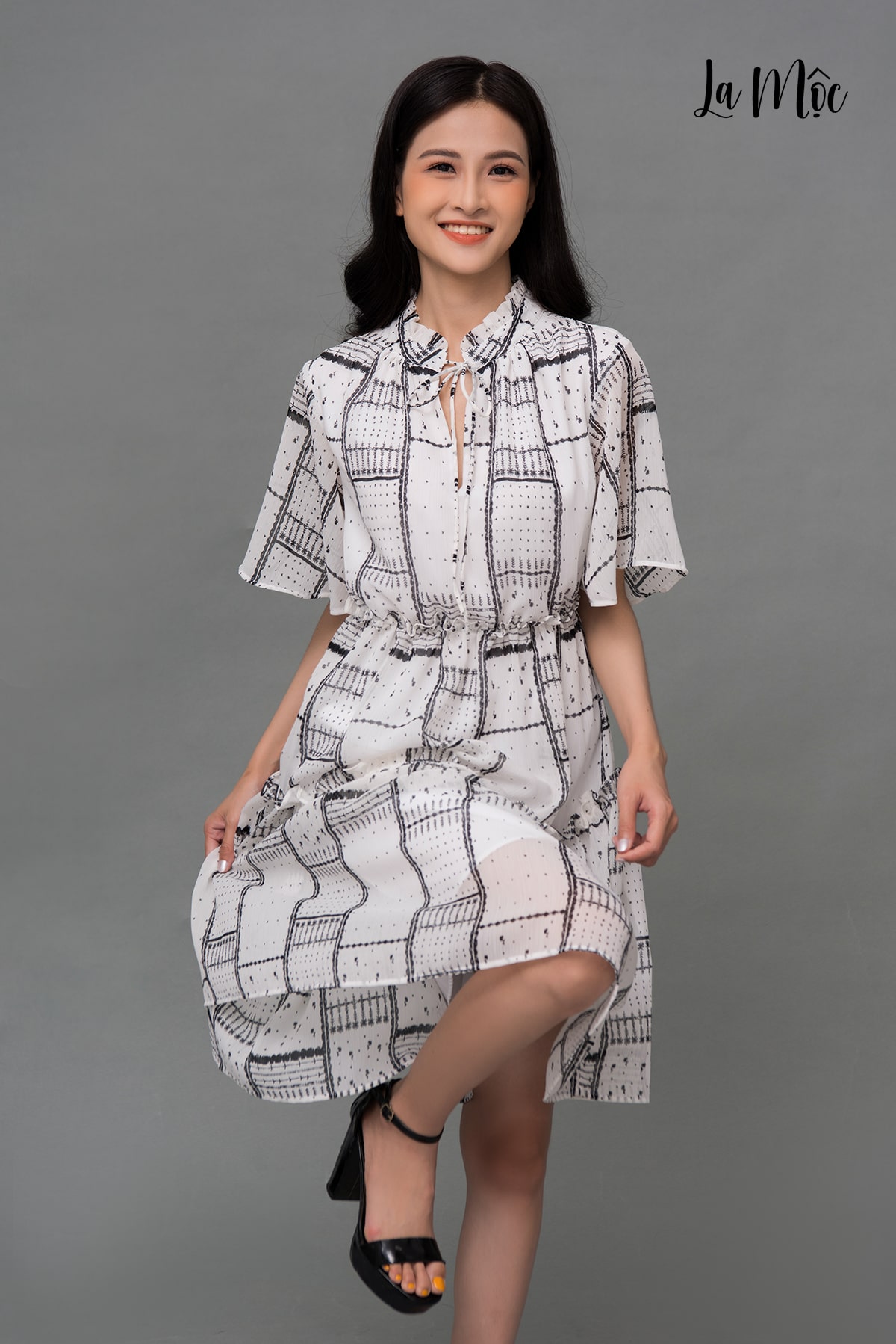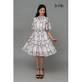 ✨Đầm Voan Xòe Cổ Trụ Nhún Eo Maxivic, La Mộc - LM72175