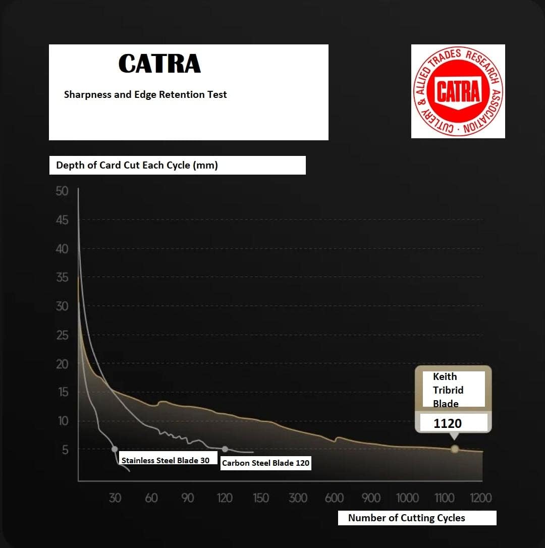 Dao bếp siêu nhẹ Titanium Keith Ti8743 được chế tạo bởi công nghệ kết hợp ba vật liệu bạc-titan-sứ, chỉ đứng sau độ cứng của kim cương, giữ cạnh tốt hơn, không mùi, không vị