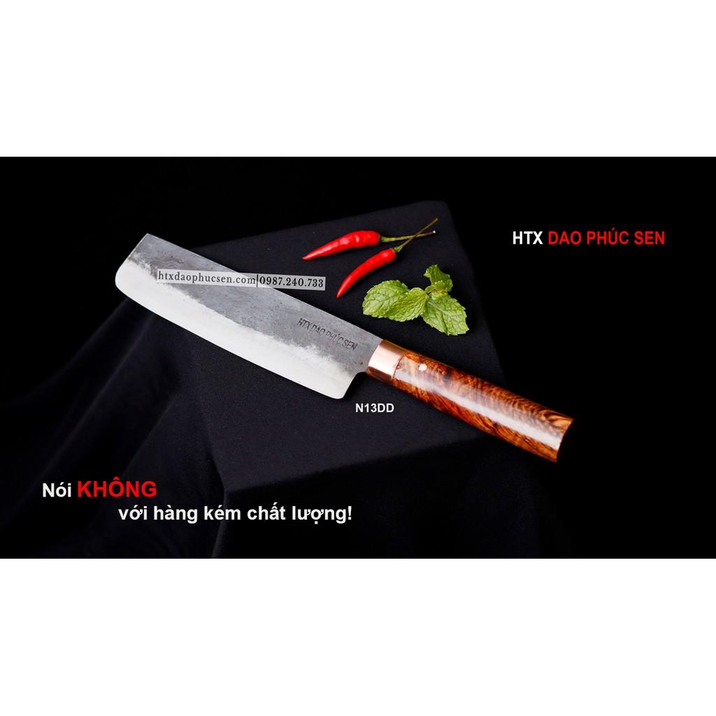 Dao Phúc Sen Bản DeBa Khâu Đồng Đỏ N12DD - Kích thước: lưỡi: 17cm, cán: 12cm, rộng: 5,2cm, dầy: 0,2ly, trọng lượng: 200g - Chức năng: sử dụng chuyên thái lọc thịt ,cá, rau củ