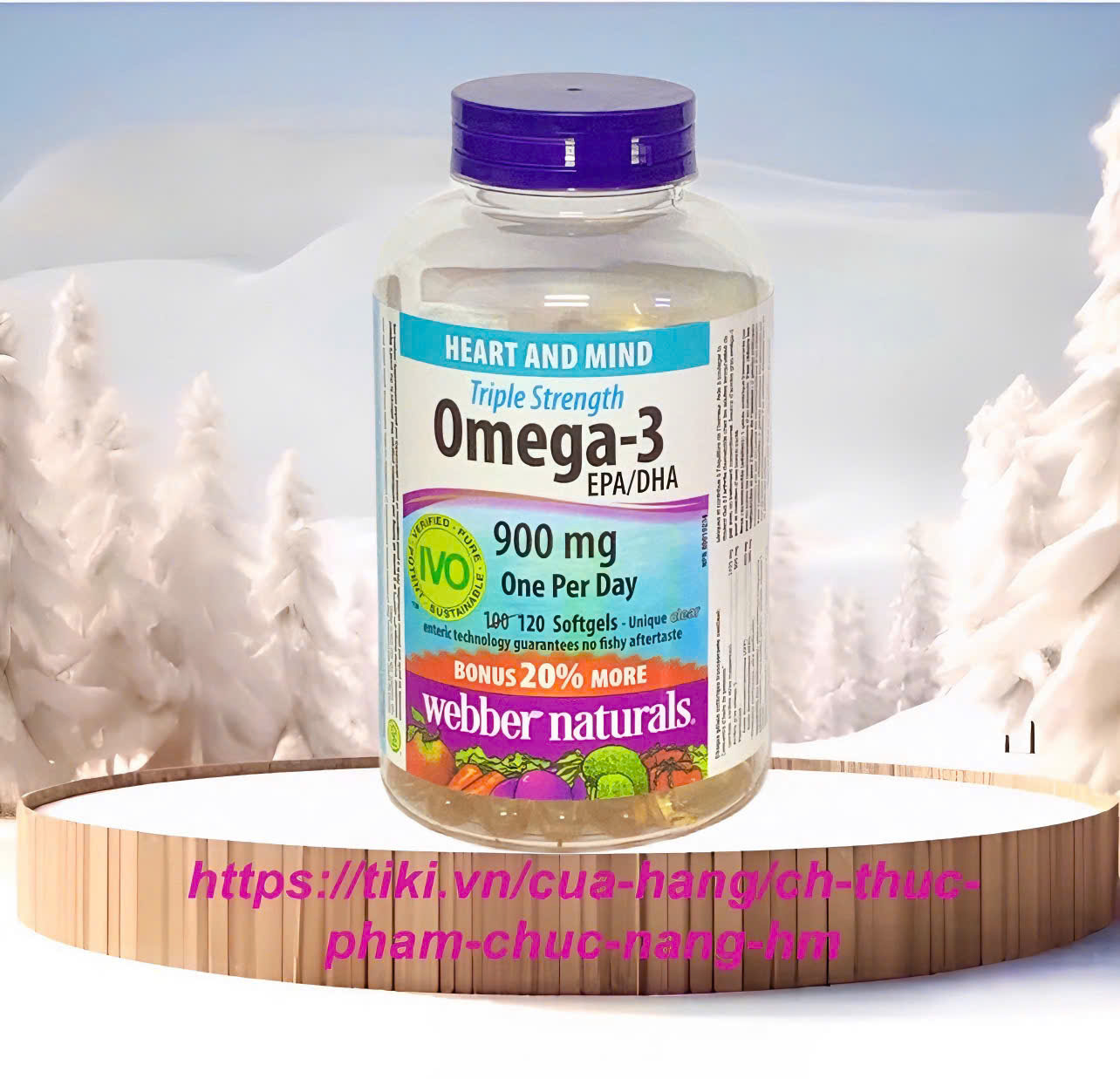 - Dầu cá Omega 3 Triple Strength 900 mg With CoQ10 cung cấp 600 mg EPA và 300 mg DHA cần thiết cho cơ thể hằng ngày. Viên Omega-3 của Webber naturals được chứng nhận bởi IVO dành cho sản phẩm dầu cá đạt chất lượng quốc tế về độ tinh khiết, đậm đặc và độ bền vững của những hoạt tính. Sản phẩm Omega-3 được sản xuất từ các nguồn nguyên liệu sạch từ các loại cá sống trong vùng biển lạnh. Các loại cá nguyên liệu được thu hoạch đảm bảo hoạt tính sinh học và bảo vệ môi trường thiên nhiên bền vững.