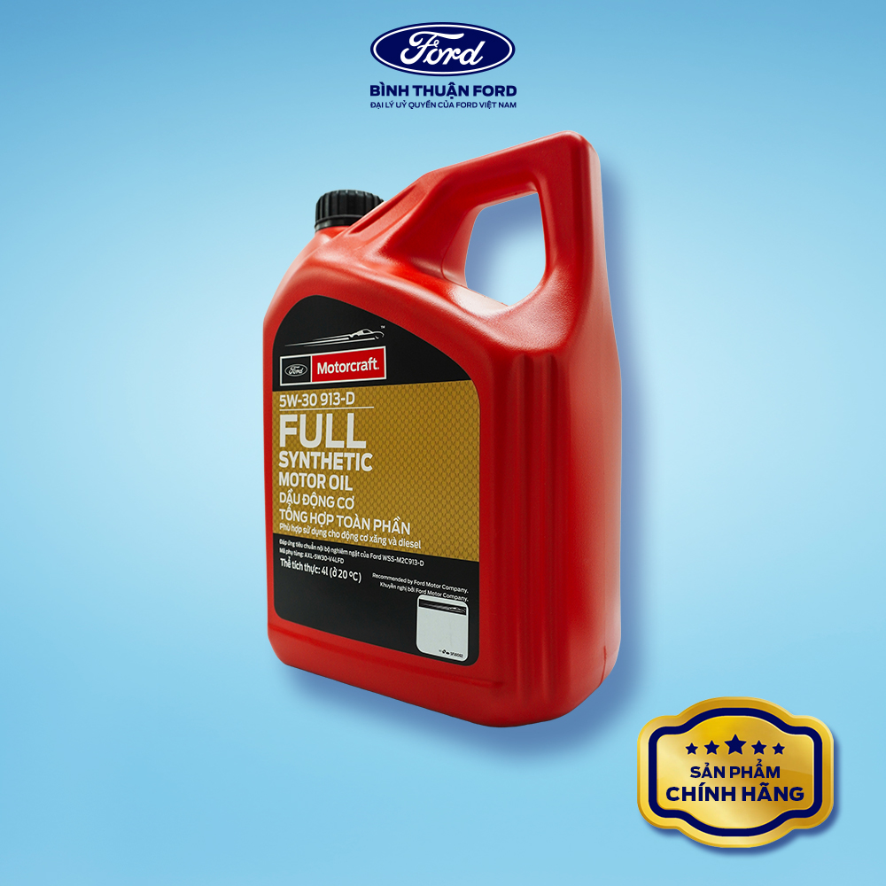 Dầu động cơ tổng hợp toàn phần Motorcraft 5W-30 913-D – đạt chuẩn Ford WSS-M2C913-D, được khuyến nghị sử dụng cho các dòng xe Ford. Bôi trơn vượt trội, giảm ma sát, bảo vệ động