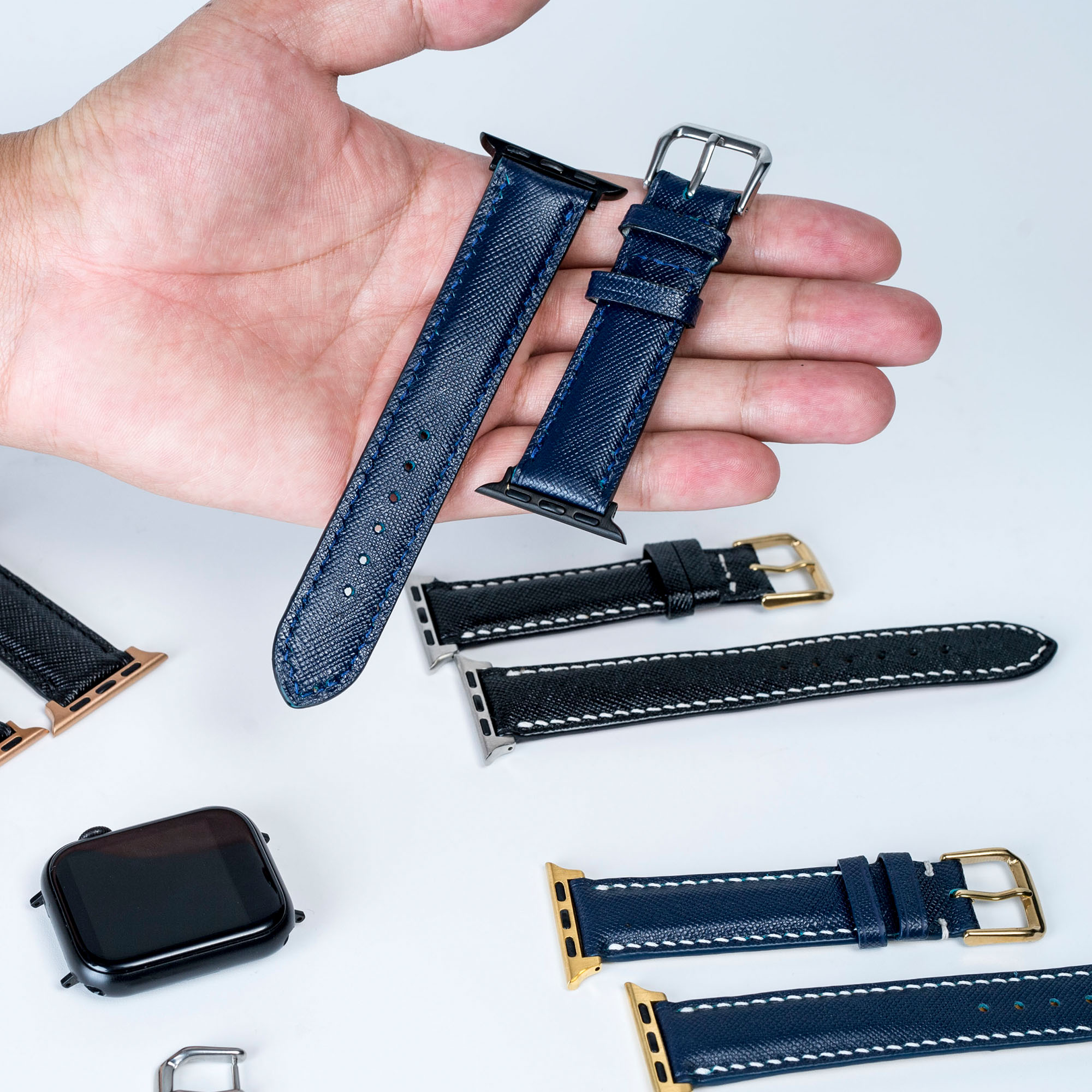 Dây apple watch da saffiano cao cấp-khâu tay thủ công