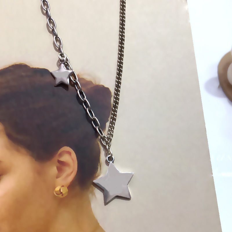 ✨Dây chuyền ngôi sao kép bất đối xứng nam nữ xu hướng thời trang mới