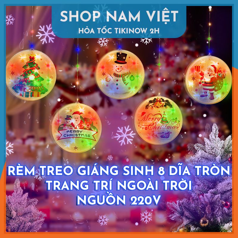 Dây Led Rèm Treo Trang Trí Giáng Sinh 8 Dĩa Tròn Chống Nước Trang Trí Ngoài Trời