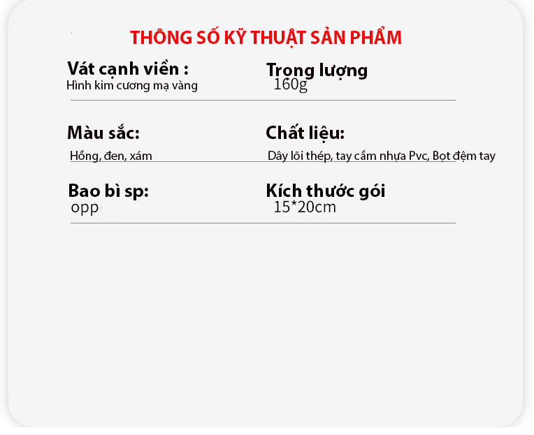 *THÔNG TIN CHI TIẾT VỀ DÂY NHẢY TẬP GYM FED-XM0105. - Mã sản phẩm: FED-XM0105. - Thương hiệu: FED. - Chất liệu Tay cầm: Hợp kim nhôm bọc cao su - CHất liệu dây: Lõi