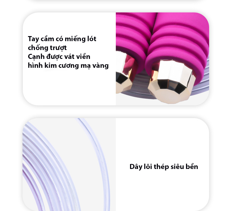 ✨Dây Nhảy Tập Thể Dục Cao Cấp Tại Nhà Lõi Thép Cao Cấp, Viền Tay Cầm Hình Kim Cương Chính Hãng Cao Cấp KitAcoom