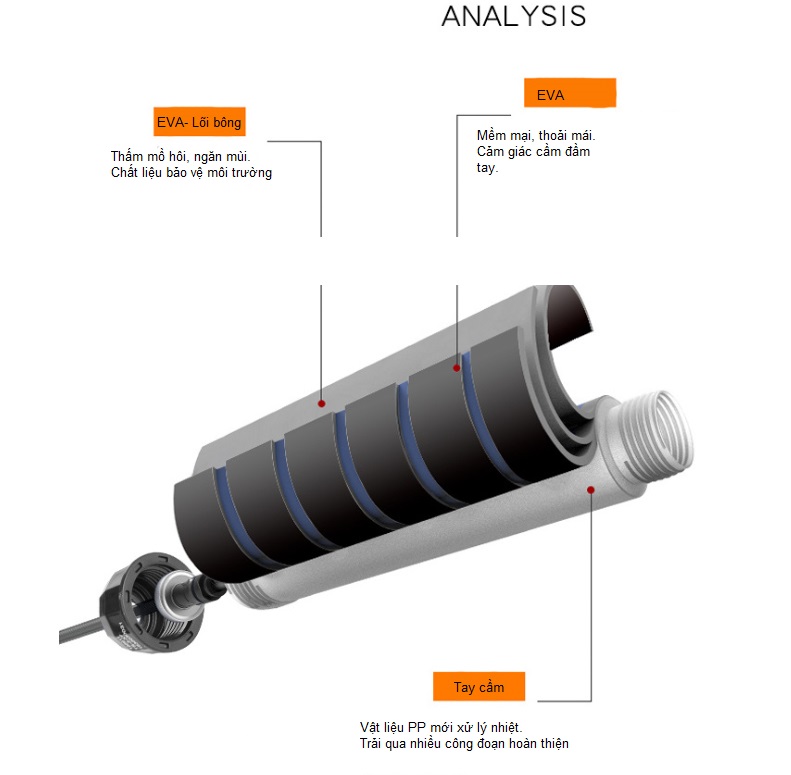 Chất liệu dây: PVC bọc dây thép cáp, chống nước, cách điện, độ bền cao Dây nhảy thể thao lõi thép cao cấp Rhino J101 tự động đếm số, tích hợp đo calo, quãng đường