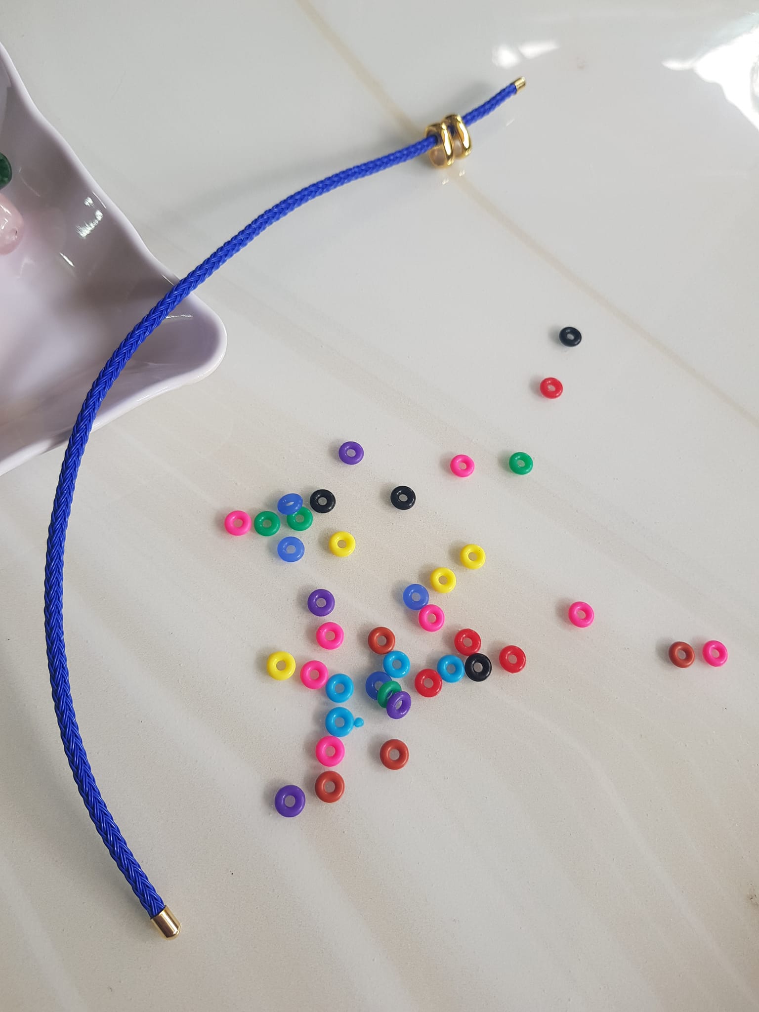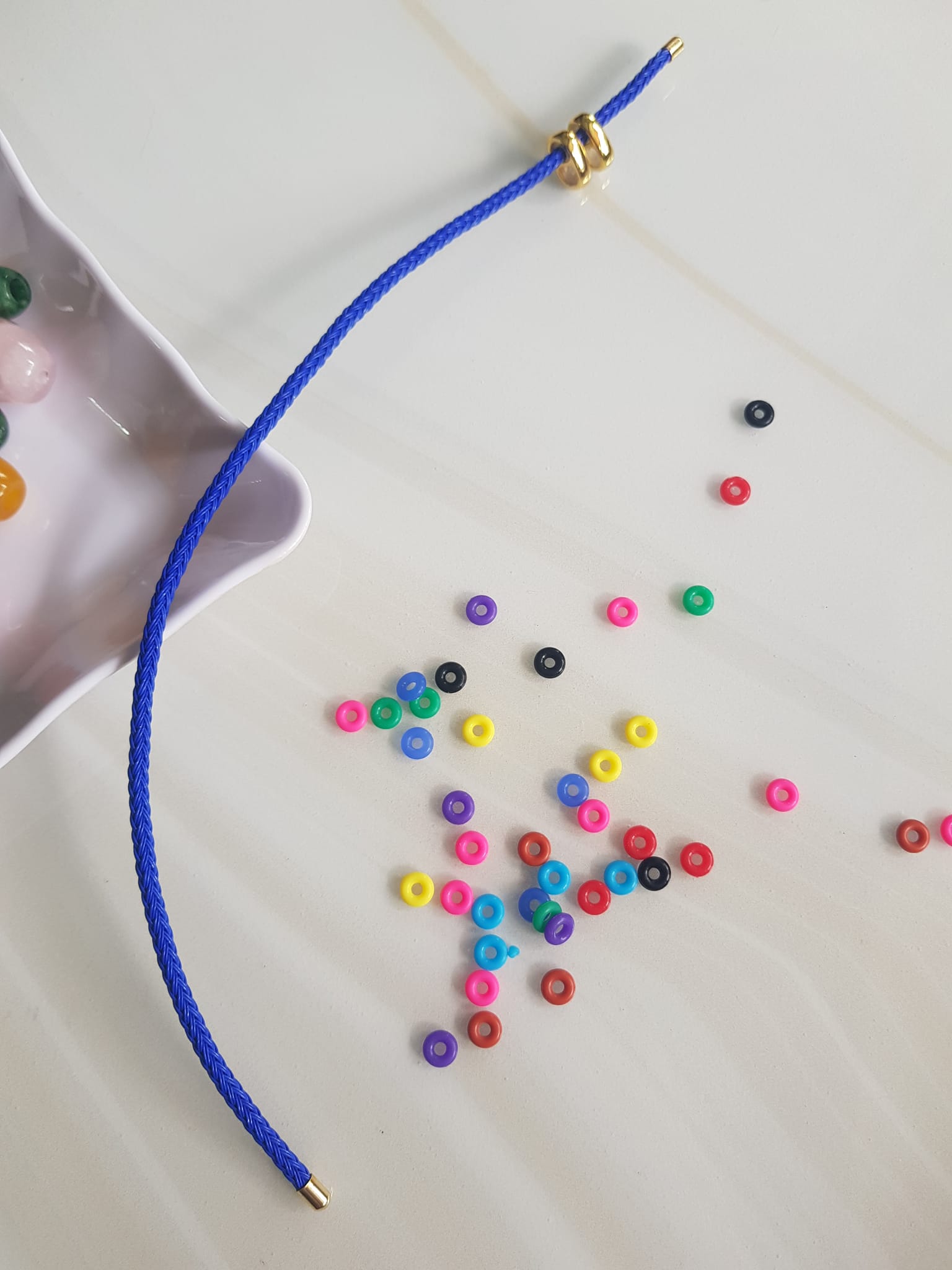✨Dây Phối Vòng Tay MÀU XANH DƯƠNG ĐẬM ĐẸP DẺO Co Giãn Có 2 Khoen Vàng Nữ Phối Với Hạt Lu Đá Tự Nhiên Các Loại Vào Làm Vòng Đeo Tay Kiểu ạ Size Dây 3mm Nữ Về để Hạt Lu Vào ở Giữa Rút Dây VÀo 2 Lỗ Khoẻn Vàng Trên Dây là đeo đẹp ạ