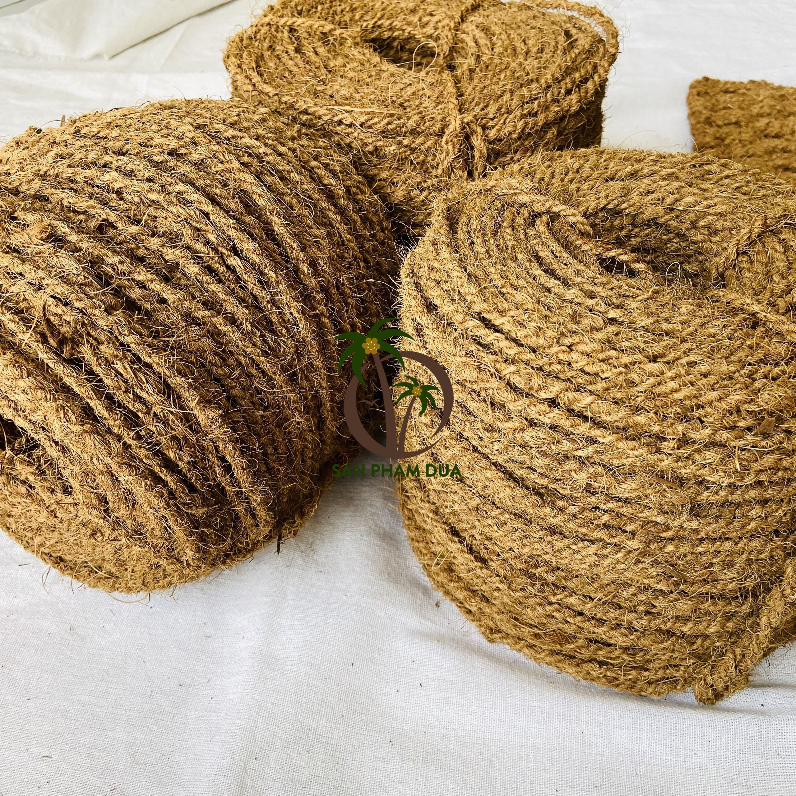 Mua tại TiktokDÂY THỪNG TRANG TRÍ BẰNG XƠ DỪA 5MM Ngày nay nhu cầu sử dụng các sản phẩm tự nhiên đang trở nên phổ biến vì vậy dây thừng SẢN PHẨM DỪA lại sử dụng trong nhiều mục đích khác nhau như : trồng cây, trang trí KÍCH THƯỚC SẢN PHẨM : Đường kính : 5mm ( +-1-1.5mm) vì sản phẩm thủ công nên cần có một mức dung sai Chiều dài cuộn : 100 mét / cuộn Nguyên liệu : 100% từ vỏ dừa SỬ DỤNG