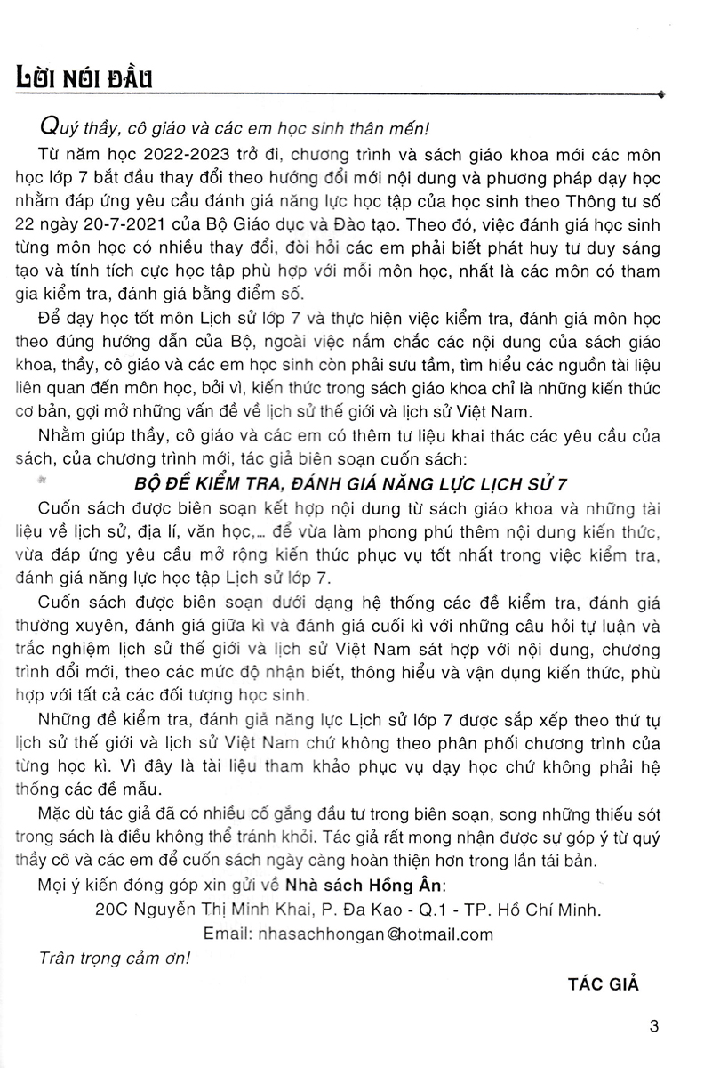 Mặc dù tác giả đã có nhiều cố gắng đầu tư trong biên soạn, song những thiếu sót trong sách là điều không thể tránh khỏi. Tác giả rất mong nhận được sự góp ý từ quý thầy cô và các em để cuốn sách ngày càng hoàn thiện hơn trong lần tái bản .