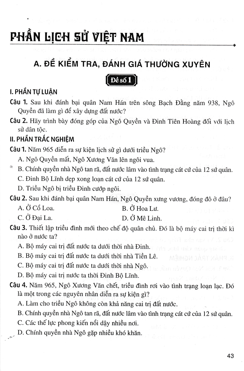 Cuốn sách được biên soạn dưới dạng hệ thống các đề kiểm tra, đánh giá thường xuyên, đánh giá giữa kì và đánh giá cuối kì với những câu hỏi tự luận và trắc nghiệm lịch sử thế giới và lịch sử Việt Nam sát hợp với nội dung, chương trình đổi mới, theo các mức độ nhận biết, thông hiểu và vận dụng kiến thức, phù hợp với tất cả các đối tượng học sinh.
