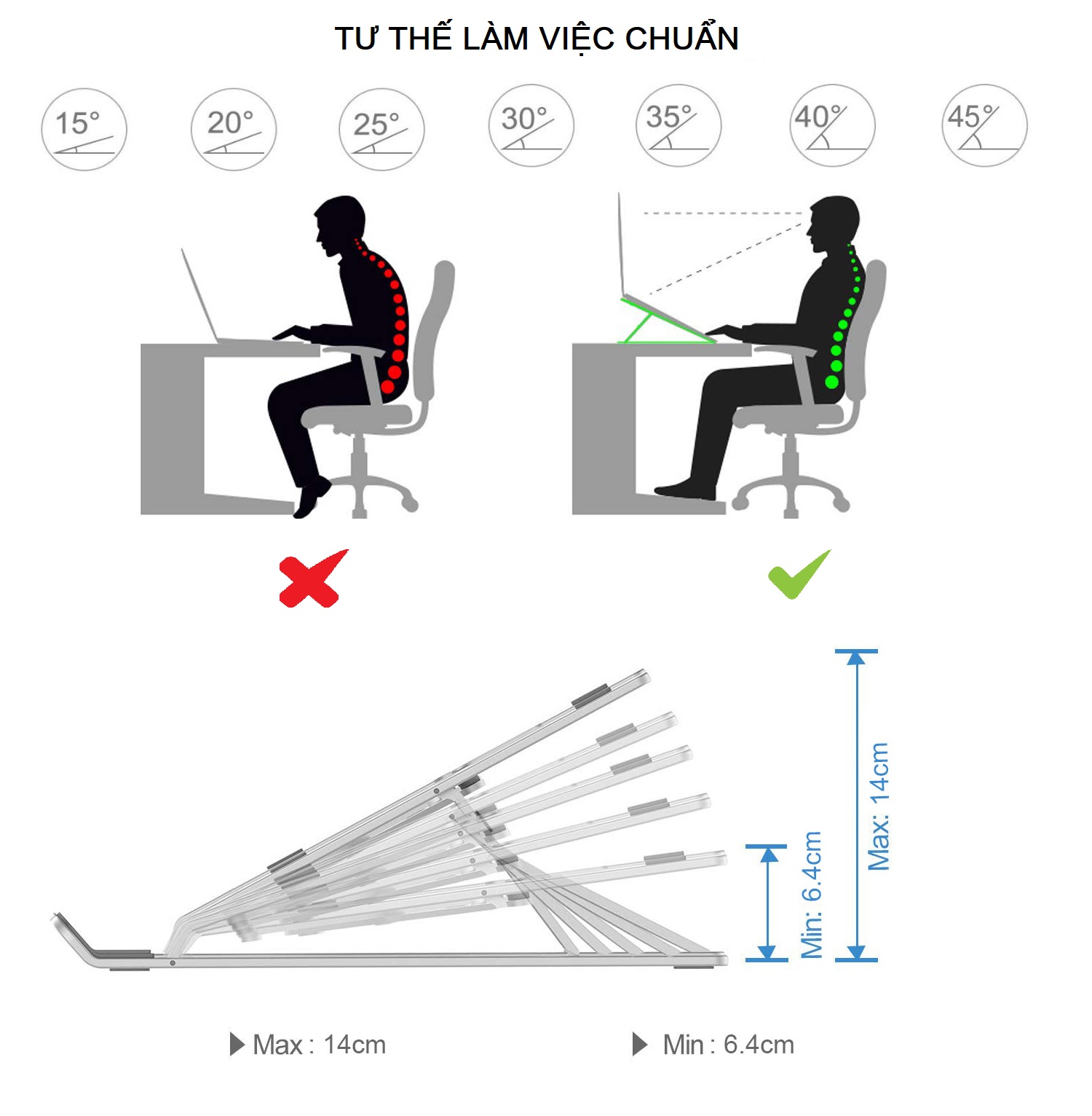 Giá đỡ Laptop Stand Thương hiệu: Mô tả sản phẩm - Thiết kế công thái học: Giá đỡ máy tính xách tay thiết kế kiểu Z có thể điều chỉnh độ cao và góc bằng