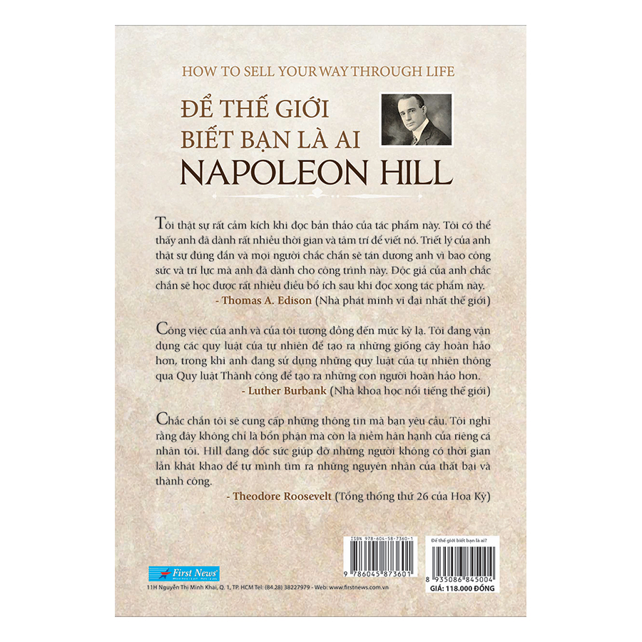 Cuốn sách gồm bốn phần. Phần một miêu tả triết lý đàm phán thông qua hoạt động của những người đã quảng bá bản thân thành công mà không gây ra va chạm trong các mối quan hệ với người khác. Trọn cả phần hai được dành để nói về triết lý của việc quảng bá dịch vụ cá nhân cho mọi tính cách, đặc biệt nhấn mạnh vào những câu chuyện có thật, mang giá trị tuyệt vời đối với những người trẻ mới bắt đầu sự nghiệp. Phần ba chủ yếu phân tích toàn diện về những phương pháp mà một người giàu có bậc nhất nước Mỹ, Henry Ford, đã dùng để quảng bá bản thân, để từ một người nghèo khó trở thành một người nổi tiếng và giàu có. Những câu chuyện có thật được kể trong bốn phần của cuốn sách này không chỉ đơn thuần là được viết lại. Đây là những câu chuyện về những cuộc đời đã được sống bởi những người đàn ông, phụ nữ góp phần đưa nước Mỹ trở thành một đất nước công nghiệp vĩ đại nhất thế giới. Cuốn sách là chứa đựng những nguyên tắc vượt thời gian này là dành cho tất cả chúng ta, những ai không muốn bị hòa tan, chìm lẫn giữa thế giới rộng lớn, nhiều biến động này. Sách được chuyển ngữ bởi Châu Khánh Tâm, Lê Thị Hồng Thắm. Nhà xuất bản Tổng hợp, First News ấn hành.