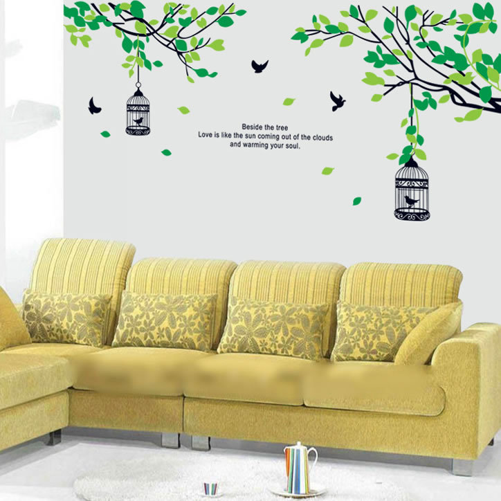 TÁN CÂY VÀ LỒNG CHIM DECAL DÁN TƯỜNG LUVINA