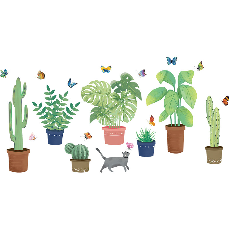 ✨Decal giấy dán tường chậu xương rồng XL7248