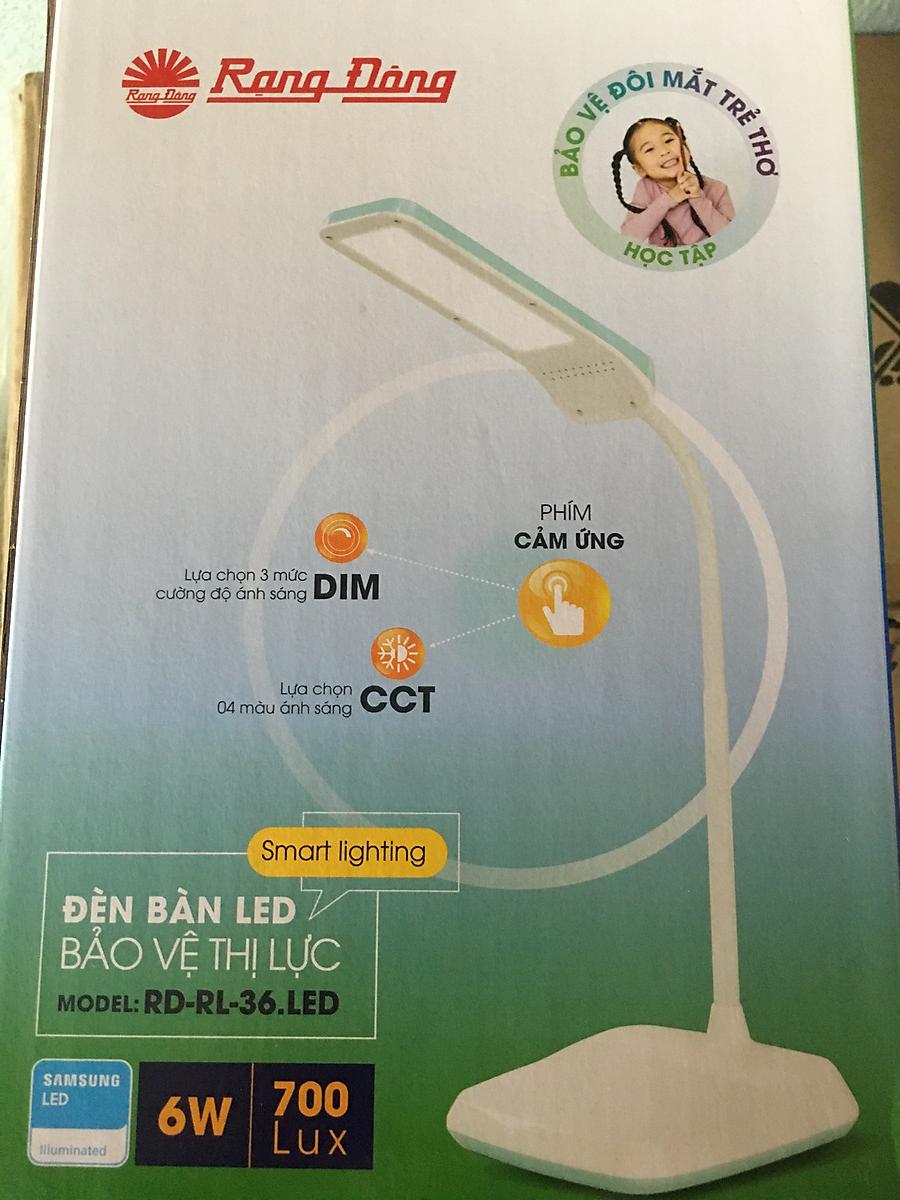 Đèn bàn học led cảm ứng chính hãng Rạng Đông Model: RD RL 36 LED Công suất: 6W Điện áp danh định: 220V/50Hz Độ rọi trung bình: ≥700lux Nhiệt độ màu: 3000K-6500K Tính năng điều