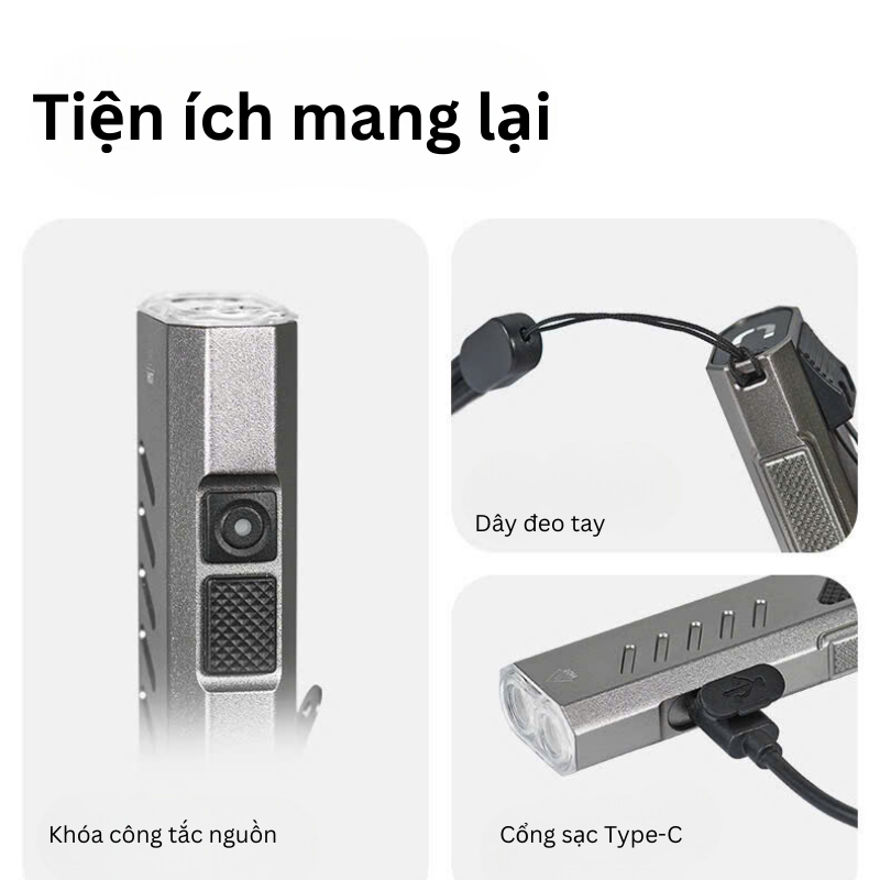 Đèn pin cầm tay mini siêu sáng chiếu xa, pin trâu, 5 chế độ sáng, đèn pin mini cầm tay có móc gài tiện dụng ƯU ĐIỂM SẢN PHẨM: Đèn pin cầm tay siêu