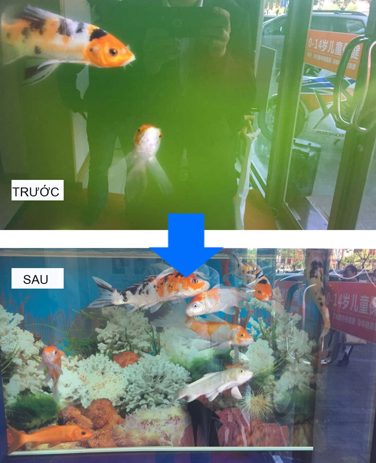 Diệt rêu tảo xanh: Xóa tan màu xanh đục khó chịu, làm nước trở nên trong vắt, trả lại vẻ đẹp tự nhiên cho hồ cá.