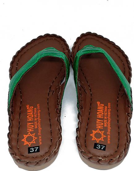 ✨Dép nữ Huy Hoàng da đà điểu màu xanh rêu HT7409