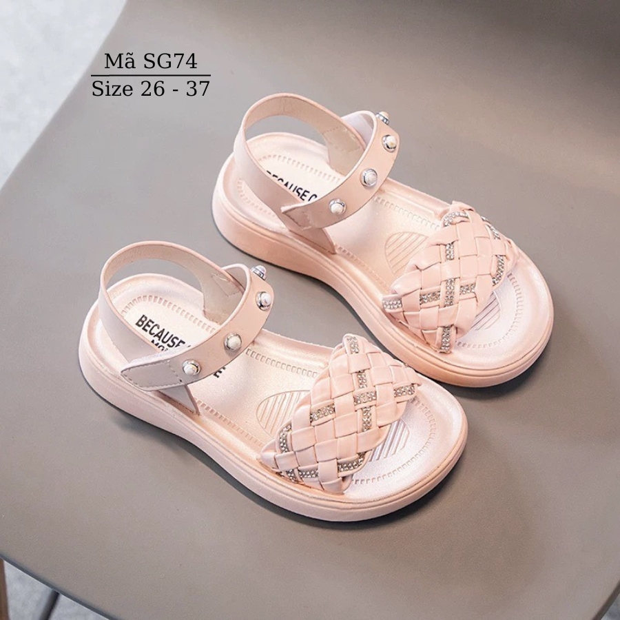 Dép sandal bé gái quai hậu tết sam điệu đà thời trang êm nhẹ chống trơn trượt cho trẻ em học sinh đi học đi biển SG74 Dép quai hậu cho bé gái SG74 thiết