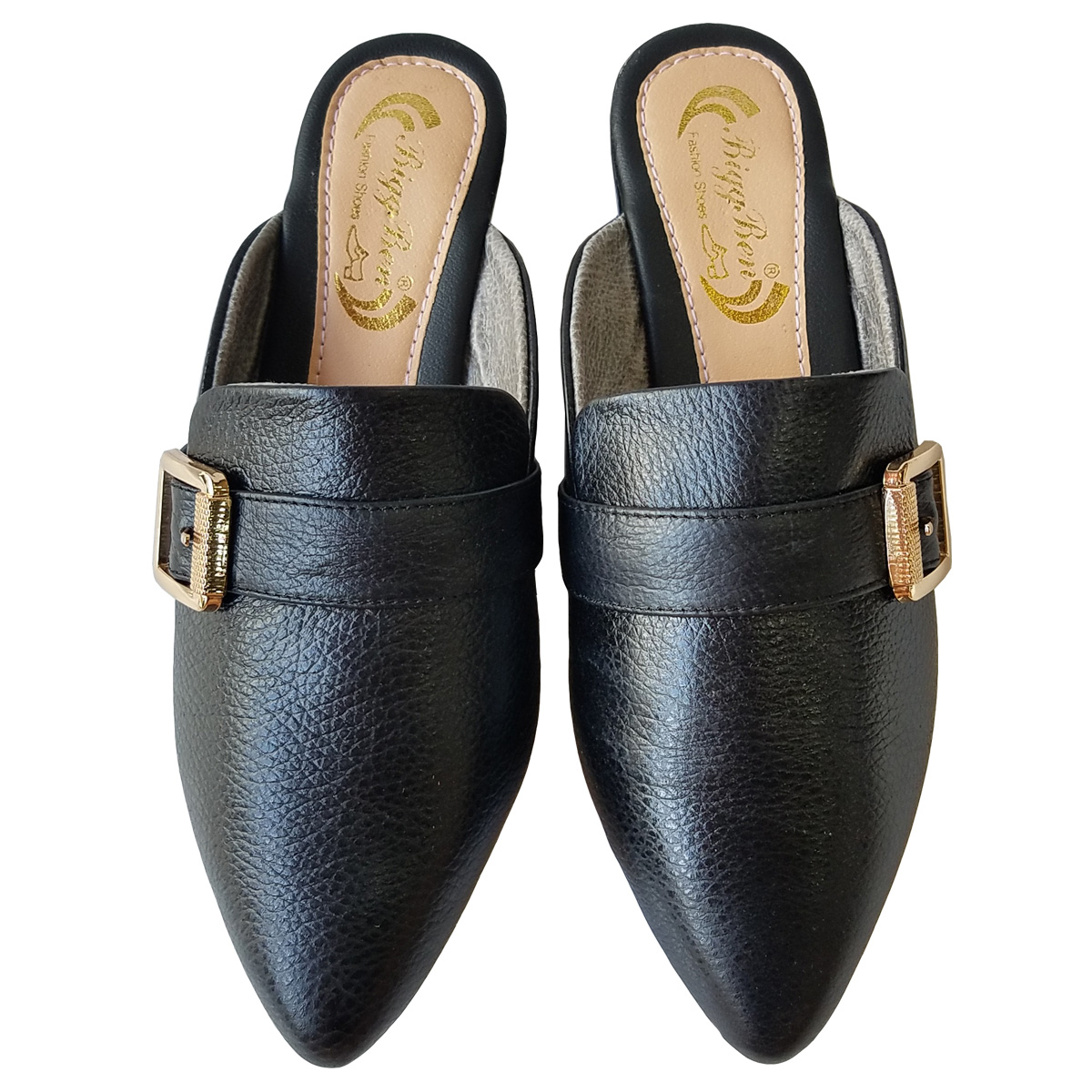 Giày Sục Nữ Giày Cao Gót 3Cm Da Bò Thật Siêu Mềm Cao Cấp Evelynv 3P2916 (Đen)