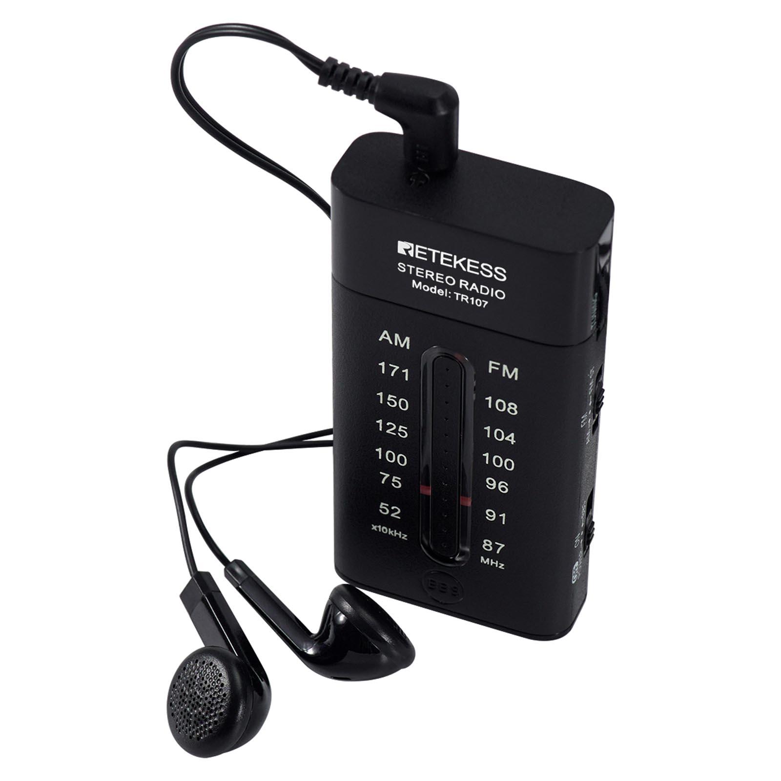 ✨Di động Mini Pocket Radio FM AM Pointer Tuning Retekess TR107 Hỗ trợ âm thanh nổi BBS với Tai nghe để Đi bộ Tập thể dục Chạy bộ