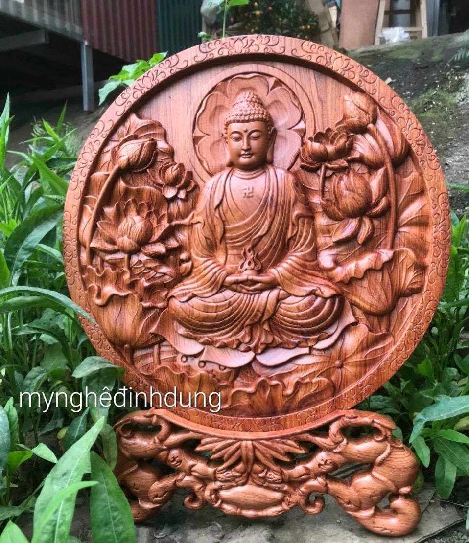 ✨Đĩa khắc phật adi đà bằng gỗ hương đá kt 30cm
