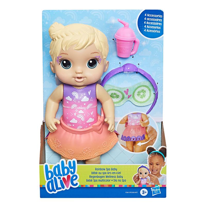 Mua tại TiktokĐồ Chơi BABY ALIVE Thư Giãn Spa Cùng Bé Raniee F5617 Búp bê Baby Alive 10 inch này đi kèm với mặt nạ mắt dưa chuột dễ thương. Đó là một món đồ chơi theo chủ đề spa vui nhộn với chiếc váy hai mặt màu sắc, các bé có thể biến tấu và tạo ra một diện mạo khác. Búp bê Rainbow Spa Baby dành cho trẻ từ 3 tuổi trở lên cũng bao gồm một băng đô phù hợp và một bình sữa có thể cho búp bê ăn. Với 5 điểm khớp nối, bé búp bê có thể tạo dáng này sẽ trở thành một món quà tuyệt vời dành cho các bé.