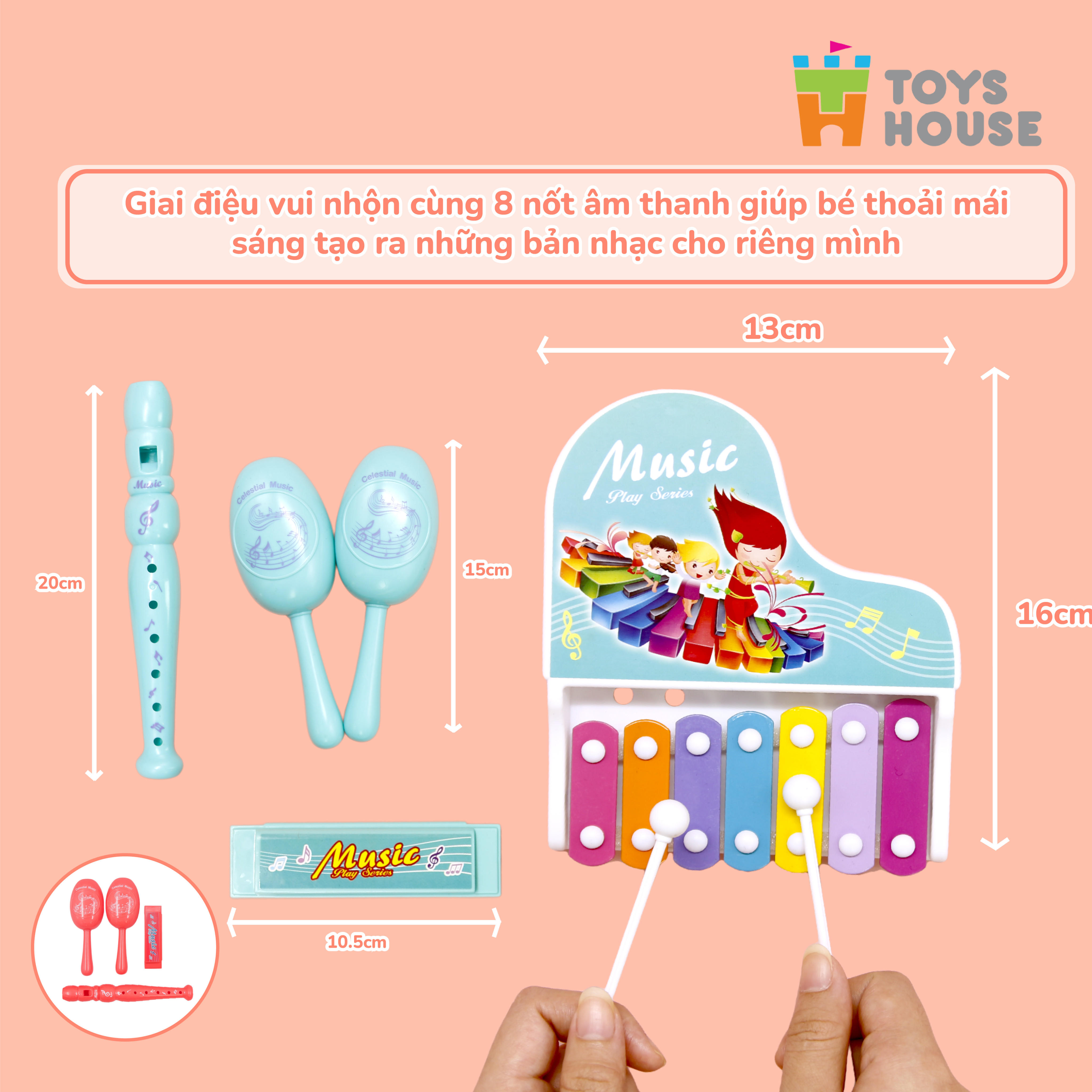 ✨Đồ chơi đàn gõ Xylophone kèm sáo, lục lạc, kèn harmonica - Đồ chơi âm nhạc cho bé ToyHouse 682-9