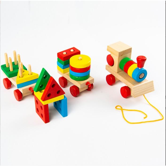 Đồ chơi đoàn tàu thả hình gỗ cho bé thật thú vị