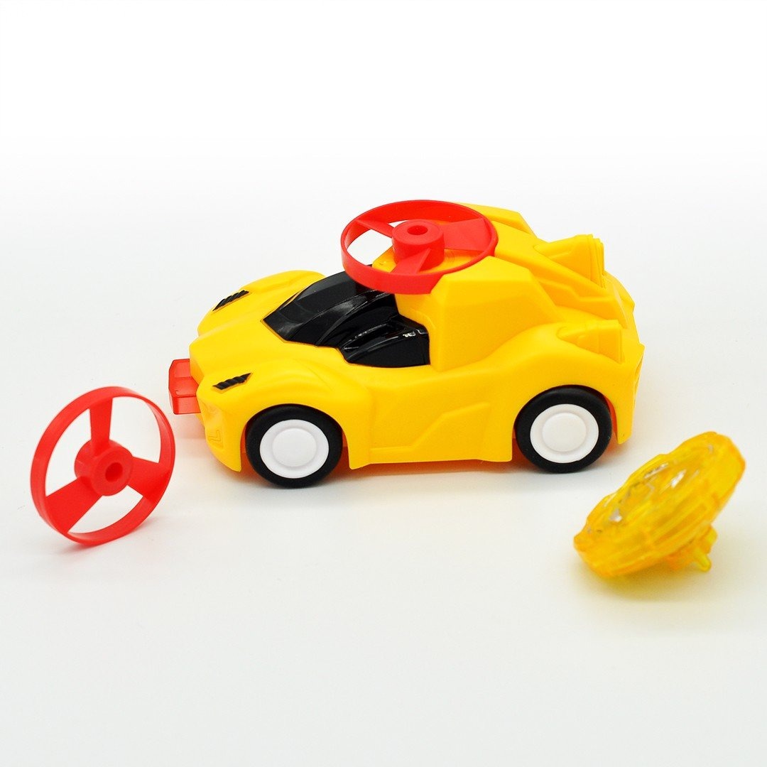 Con quay ánh sáng - Đĩa bay (Vàng), DK 81202   Đồ chơi con quay là sản phẩm đồ chơi cho bé được mô phỏng theo nội dung của các bộ phim hoạt hình hấp dẫn đang trình chiếu, nên các bé đều có tâm lý mong muốn sở hữu một món đồ chơi đầy ma lực này để giải trí sau những giờ học tập căng thẳng. Ngoài con quay nhiều màu sắc, sản phẩm còn kết hợp thêm các đĩa bay tạo thêm phần hấp dẫn khi chơi.  Với kết cấu chắc chắn được thiết kế bằng nhựa ABS và kim loại đúc giúp con quay chịu lực va đập tốt, khi con quay chuyển động có đèn led phát sáng tạo sự hấp dẫn, bắt mắt.Khuôn viền được thiết kế không góc cạnh đảm bảo độ an toàn cho bé khi chơi. Phụ kiện chính kèm theo là chiếc ô tô mô hình được thiết kế bằng nhựa ABS nguyên khối, chịu được lực va chạm mạnh và ở mũi xe đều có các nút bật khi có lực tác động giúp con quay và đĩa bay vút lên cao.  Trên mỗi bìa hộp đều có hướng dẫn sử dụng, cách chơi được mô tả chi tiết bằng tiếng Việt.   Trò chơi mang lại các lợi ích cho bé như:   - Tăng cường thị giác linh hoạt   - Bồi dưỡng khả năng tập trung   - Kích thích trí tưởng tượng   - Rèn luyện kỹ năng vận động