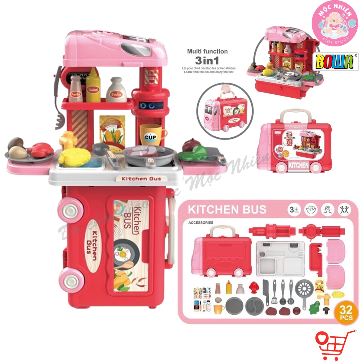 ✨Đồ chơi hướng nghiệp nhập vai đầu bếp nấu ăn Bowa 8075 - Xe buýt nhà bếp 32 chi tiết (bánh xe đẩy được)