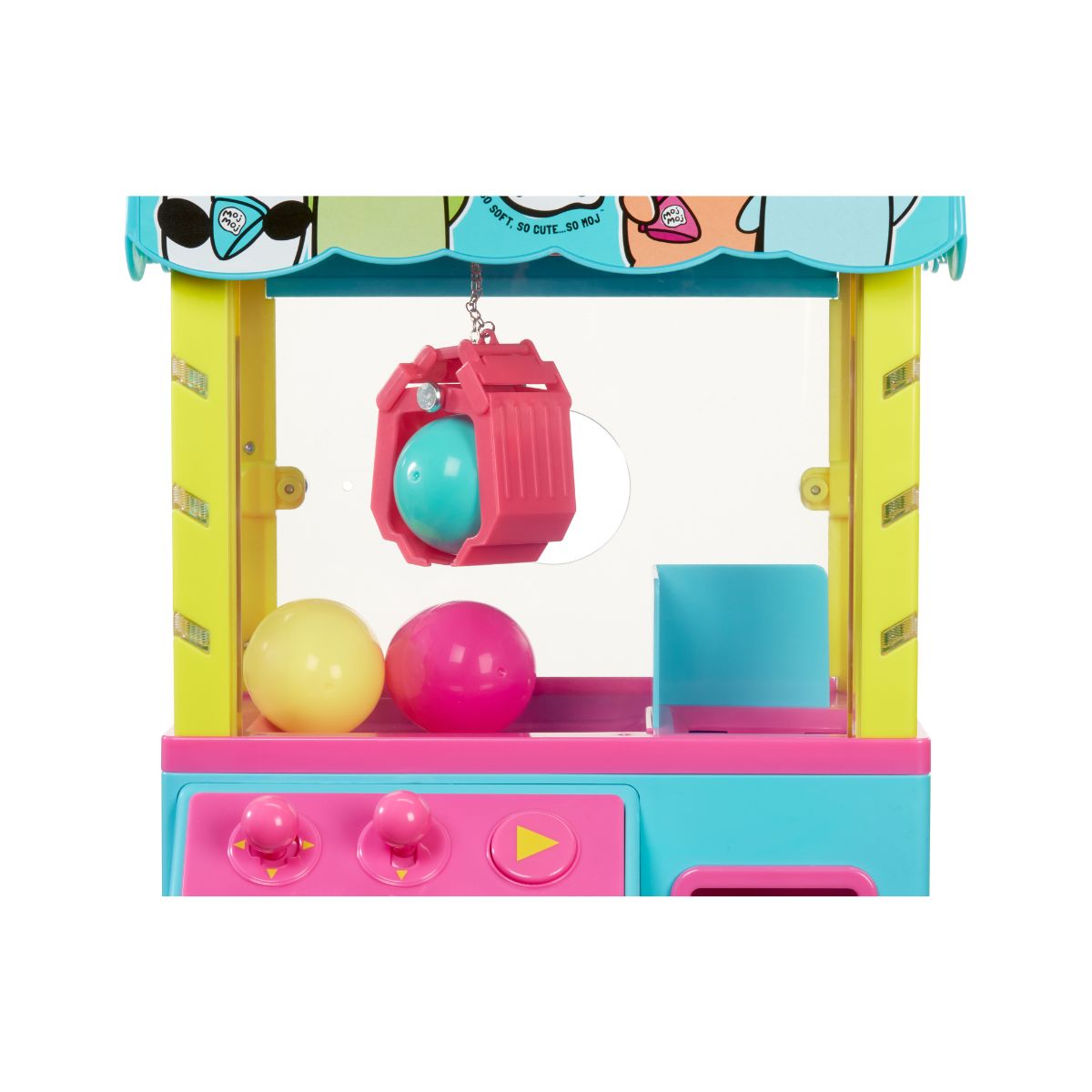 - Sau khi gắp được đồ chơi, đưa càng gắp về phía khe thả quà và thả xuống để lấy phần thưởng của bạn! Sản phẩm đi kèm một nhân vật Moj Moj Squish lấp lánh độc quyền! Ngoài ra, bạn cũng có thể sử dụng máy để trưng bày hoặc cất giữ bộ sưu tập Moj Moj yêu thích của mình. Bộ sản phẩm bao gồm: