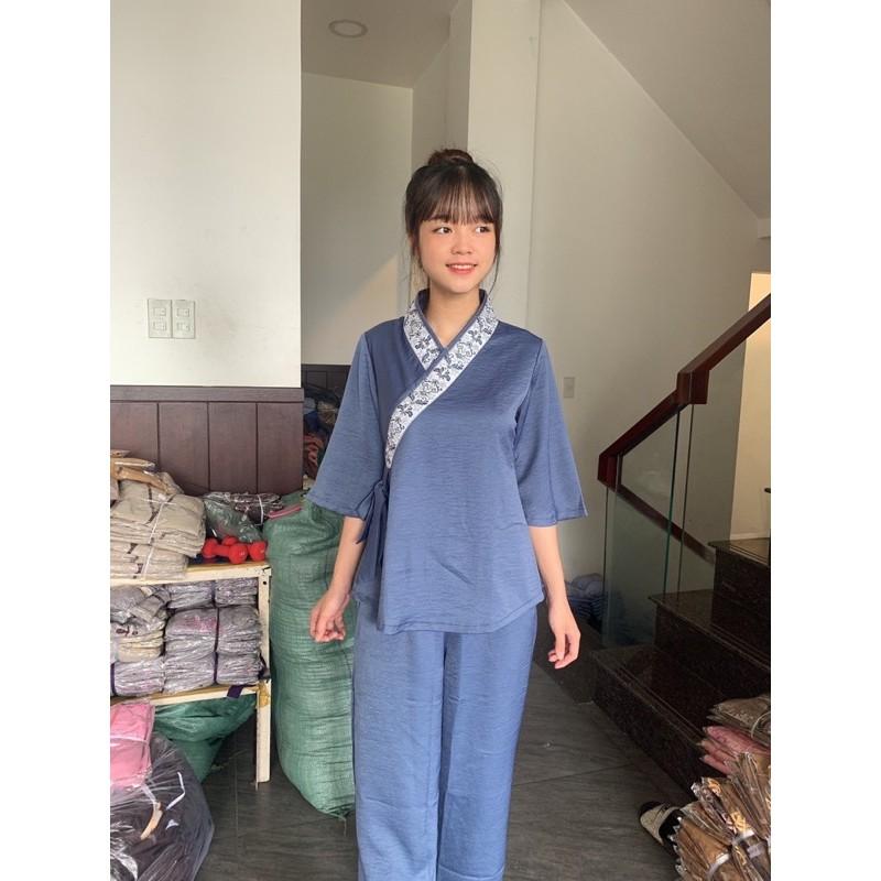 Mẫu pháp phục nữ - quần áo Phật tử đi chùa, đồ lam chất kate lụa mềm có co giãn Sen Hồng 0898553583