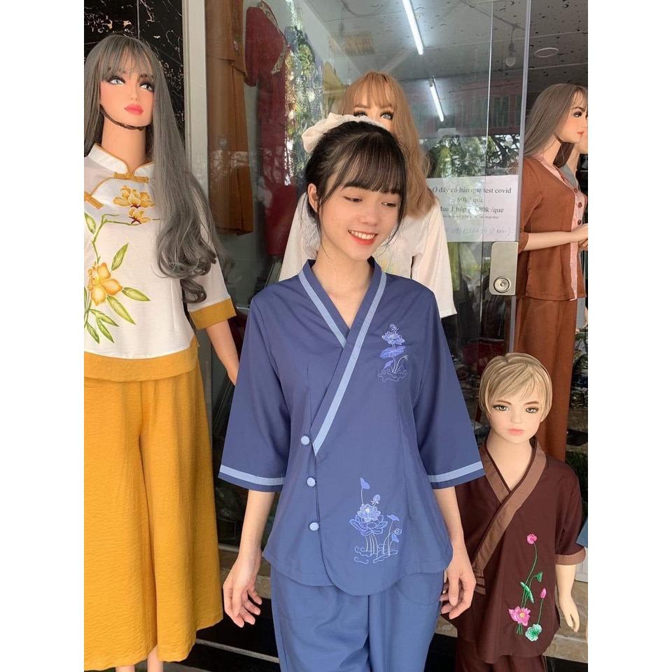 Quần áo phật tử, đồ lam đi chùa mẫu TIM VIỀN A58, shop Hồng Phúc An