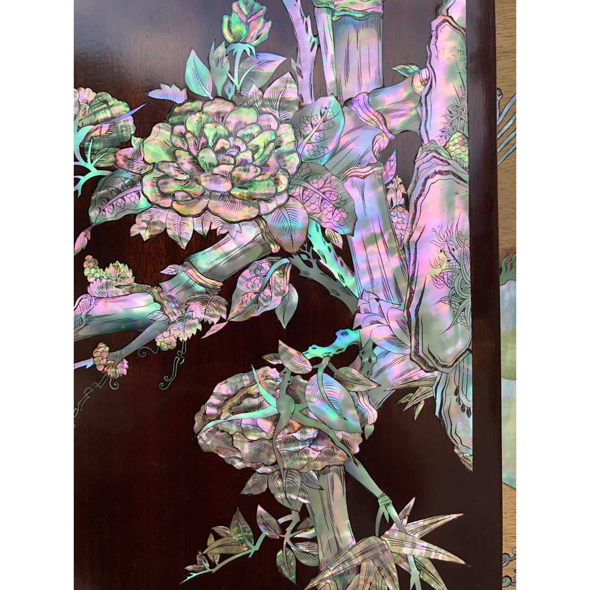 Mới về đôi câu đối gụ mật khảm ốc rực rỡ Trần mộc đẹp quá kt 2,50m x 26cm Lh 0352674623