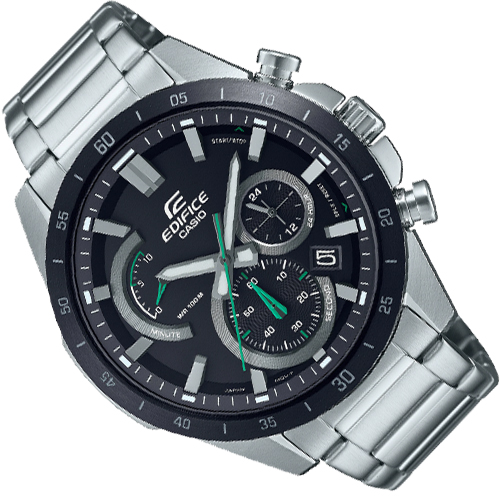 Các tính năng Đồng hồ ghi thời gian chạy bằng năng lượng mặt trời mới này có mặt số sợi carbon tượng trưng cho chủ đề đua xe thể thao của dòng sản phẩm EDIFICE.