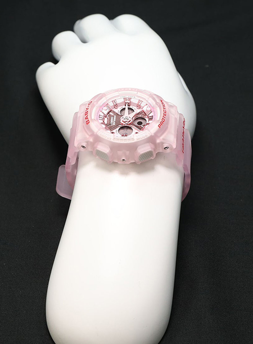 Các tính năng Sở hữu những chiếc đồng hồ lấy cảm hứng từ điệu nhảy hip-hop được thiết kế cùng với RIEHATA. Vũ công và biên đạo nổi tiếng thế giới này mang đến vẻ ngoài hoàn toàn mới cho những chiếc đồng hồ BA-130 này, tạo điểm nhấn độc đáo cho những chiếc vỏ ngoài lớn mang tính biểu tượng. RIEHATA tạo nên sự tương phản giữa thiết kế nam tính bằng các dây đeo màu xanh và hồng bán trong suốt, đồng thời làm tăng nhịp điệu với các điểm nhấn bằng kim loại điện cho mặt đồng hồ. Thông điệp “Catch The Vibe” được in trên dây đeo đồng hồ thể hiện văn hóa hip-hop của thập niên 90 và đầu những năm 2000, gợi lại vẻ đẹp hoài cổ sắc sảo trong một chiếc đồng hồ thực sự đặc biệt. BABY-G sẽ khiến trái tim bạn loạn nhịp và sẵn sàng chuyển sang chế độ nhảy.