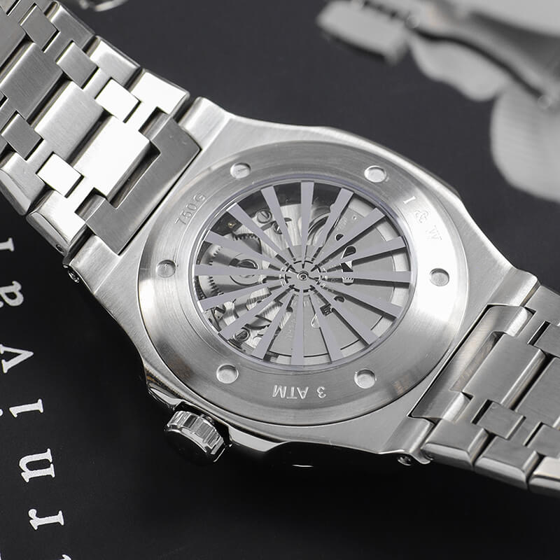 Kích thước vỏ (Dài × Rộng × Cao) 51 × 47.1 × 11.3 mm Trọng lượng 145 g Vật liệu vỏ / gờ: Thép không gỉ Dây đeo bằng thép không gỉ Nắp gập 3