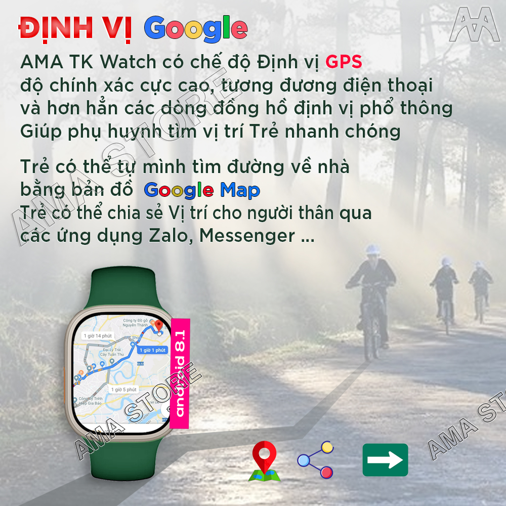 Đồng hồ Thông minh AMA Smart watch TK Titan Android 8.1 Lắp Sim Định vị GPS Google kết nối Wifi 4G Blueltooth tải App qua CH. play FB Messenger Skype Viber Wechat Line Tele xem được Video Youtube TikTok chơi Game cho Trẻ em Người lớn Hàng nhập khẩu Sản phẩm có 2 màu để lựa chọn: màu Titan và màu Đen AMA TK Watch CHÍNH HÃNG Tư vấn Sản phẩm: ⓿❾❽❻❽❹❽❺❾❾ Trong kỷ nguyên công nghệ 4.0, việc sở hữu một chiếc đồng hồ thông minh đã trở thành một phần không thể thiếu của cuộc sống hàng ngày, không chỉ giúp theo dõi sức khỏe, quản lý thời gian mà còn thể hiện phong cách cá nhân. Vào năm 2024, thương hiệu AMA đã tạo ra một bước đột phá với việc giới thiệu AMA Watch TK Black, một thiết bị đeo thông minh với nhiều tính năng vượt trội và thiết kế độc đáo, hứa hẹn sẽ mang lại trải nghiệm mới mẻ và tiện ích cho người dùng. Hệ Điều Hành Android 8.1 AMA TK WATCH được trang bị hệ điều hành Android 8.1 mạnh mẽ, giúp bạn trải nghiệm các ứng dụng và tính năng thông minh. Với hệ điều hành này, bạn có thể dễ dàng truy cập vào kho ứng dụng G Play Store để tải xuống và cài đặt và sử dụng các ứng dụng yêu thích của mình. Liên Lạc Mọi Lúc Mọi Nơi Với khả năng gắn SIM độc lập, AMA TK WATCH cho phép bạn thực hiện cuộc gọi thoại và gửi tin nhắn SMS ngay trên đồng hồ mà không cần phụ thuộc vào điện thoại di động. Bạn cũng có thể sử dụng các ứng dụng liên lạc phổ biến như Za.lo, M để giữ liên lạc với gia đình và bạn bè. Kết Nối Đa Dạng AMA TK WATCH không chỉ hỗ trợ mạng Wifi và Bluetooth, mà còn có khả năng kết nối 4G, cho phép bạn truy cập internet nhanh chóng và mượt mà. Điều này giúp bạn luôn kết nối với thế giới trực tuyến, truy cập các ứng dụng, xem video và tham gia mạng xã hội. Theo Dõi Sức Khỏe và Giải Trí AMA TK WATCH cũng là một trợ thủ đắc lực trong việc theo dõi sức khỏe cá nhân. Nó có thể đo nhịp tim, đếm số bước đi hàng ngày và cung cấp thông tin về sức khỏe của bạn. Ngoài ra, chiếc đồng hồ này cũng cho phép bạn thưởng thức giải trí với các ứng dụng xem video như You.Tube và Tik.Tok, cũng như chơi các loại game yêu thích. Đồng Bộ Dữ Liệu Với AMA TK WATCH, bạn có thể truy cập các mạng xã hội như Face book và Insta gram một cách thuận tiện. Đồng thời, việc đồng bộ dữ liệu thông qua tài khoản G giúp bạn quản lý dữ liệu cá nhân, lưu trữ tài liệu trên G Drive và sử dụng các dịch vụ của G như G và G Photos một cách dễ dàng. Chất Lượng Và Tốc Độ Vượt Trội AMA TK WATCH mang đến trải nghiệm vô cùng ấn tượng với hàng chất lượng, tốc độ xử lý nhanh chóng và giao diện đẹp mắt. Bạn cũng có tự do tùy chỉnh hình nền theo sở thích cá nhân, biến chiếc đồng hồ thành một phần không thể thiếu của phong cách thời trang của bạn. Đinh Vị Với Độ Chính Xác Cao Nhất Đồng hồ có chức năng Định vị GPS với độ chính xác tương đương với điện thoại, Đồng hồ có thể phân biệt được Bạn đã di chuyển bằng phương tiện gì, đã dừng chân ở quán ăn, quán game, nhà nghỉ, khách sạn nàạn có thể biết được thời gian dừng chân ở địa điểm đó là bao lâu, rời đi vào lúc nào. Đồng hồ có thể lưu nhật ký 180 ngày thay vì 90 ngày như các dòng định vị phổ thông. Chức năng này cực kỳ hữu ích dành cho Cha mẹ khi mua sản phẩm này cho con cái đang ở lứa tuổi học sinh, sinh viên. Quản Lý Đồng Hồ (Ứng dụng chỉ dành cho Cha mẹ) AMA TK WATCH là dòng đồ hồ Cao cấp với rất nhiều chức năng. Nếu Phụ huynh mua cho con thì có thể Quản lý đồng hồ từ xa, Phụ huynh có thể quản lý thời gian xem video, thậm chí có thể khóa ứng dụng không cho sử dụng. Phụ huynh có thể khóa, hạn chế tải ứng dụng. Mọi hoạt động của Trẻ đều phải được sự đồng ý của cha mẹ qua ứng dụng quản lý. Phù Hợp AMA TK WATCH là sản phẩm phù hợp với tất cả Mọi người (Học sinh, Sinh viên, Công nhân, Nhân viên Văn phòng, Doanh nhâ) LỜI KẾT AMA TK WATCH không chỉ là một chiếc đồng hồ thông minh mà còn là một người bạn đồng hành đáng tin cậy trong cuộc sống hàng ngày. Với HĐH Android, khả năng gắn SIM độc lập, kết nối đa dạng, chăm sóc sức khỏe và khả năng giải trí, chiếc đồng hồ này chắc chắn sẽ đem lại sự tiện ích và phong cách cho người dùng hiện đại. AMA TK WATCH thật sự là sự hòa quyện hoàn hảo giữa công nghệ và thời trang. Thị Trường Trên thị trường có nhiều loại đồng hồ tương tự, kiểu dáng khá giống với AMA TK Watch. Khách mua hàng cần cân nhắc lựa chọn giữa sản phẩm Thương hiệu chất lượng và sản phẩm giá rẻ. Chúng tôi là AMA, chuyên cung cấp các sản phẩm có Chất lượng cao, Bảo hành đúng thời hạn quy định và Hỗ trợ khách hàng tận tâm! Hãy liên hệ với chúng tôi để đội ngũ nhân viên AMA phục vụ bạn nhé! HƯỚNG DẪN CÀI ĐẶT QUẢN LÍ NẾU PHỤ HUYNH MUA CHO CON THÔNG TIN CHI TIẾT VÀ CẤU HÌNH